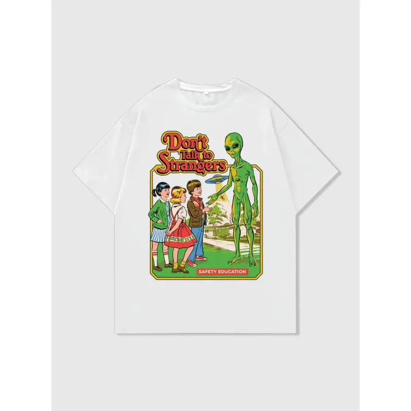 Men's Cartoon Alien & Letter Print Round Neck Tee, Regular Fit Street Fashion Casual Short Sleeve T-Shirt for Daily Wear, Men's Summer Clothes
