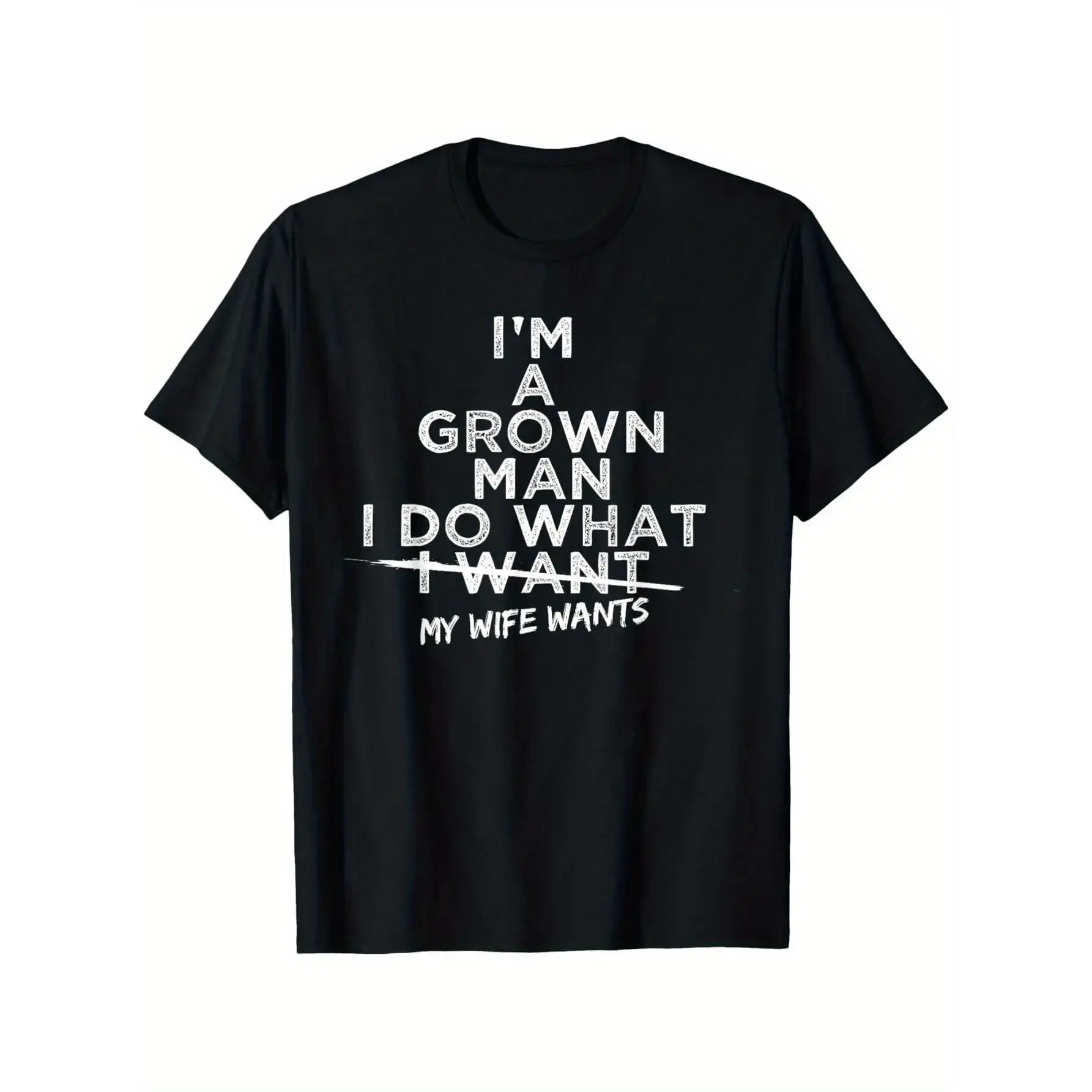 Funny "I Do What My Wife Wants" Husband Gift T-Shirt from Wife - Black with White Print Humorous Marriage Apparel, Comfortable Round Neck Short Sleeve Casual Tee for Men, All-Season Wear & Couples Gift Idea