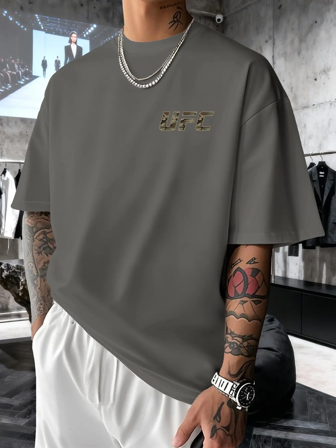 【Graphic Print】: Stand out with the unique camouflage UFC graphic print, adding a sporty touch to your outfit.