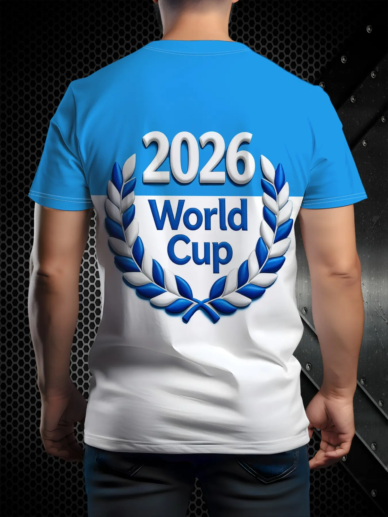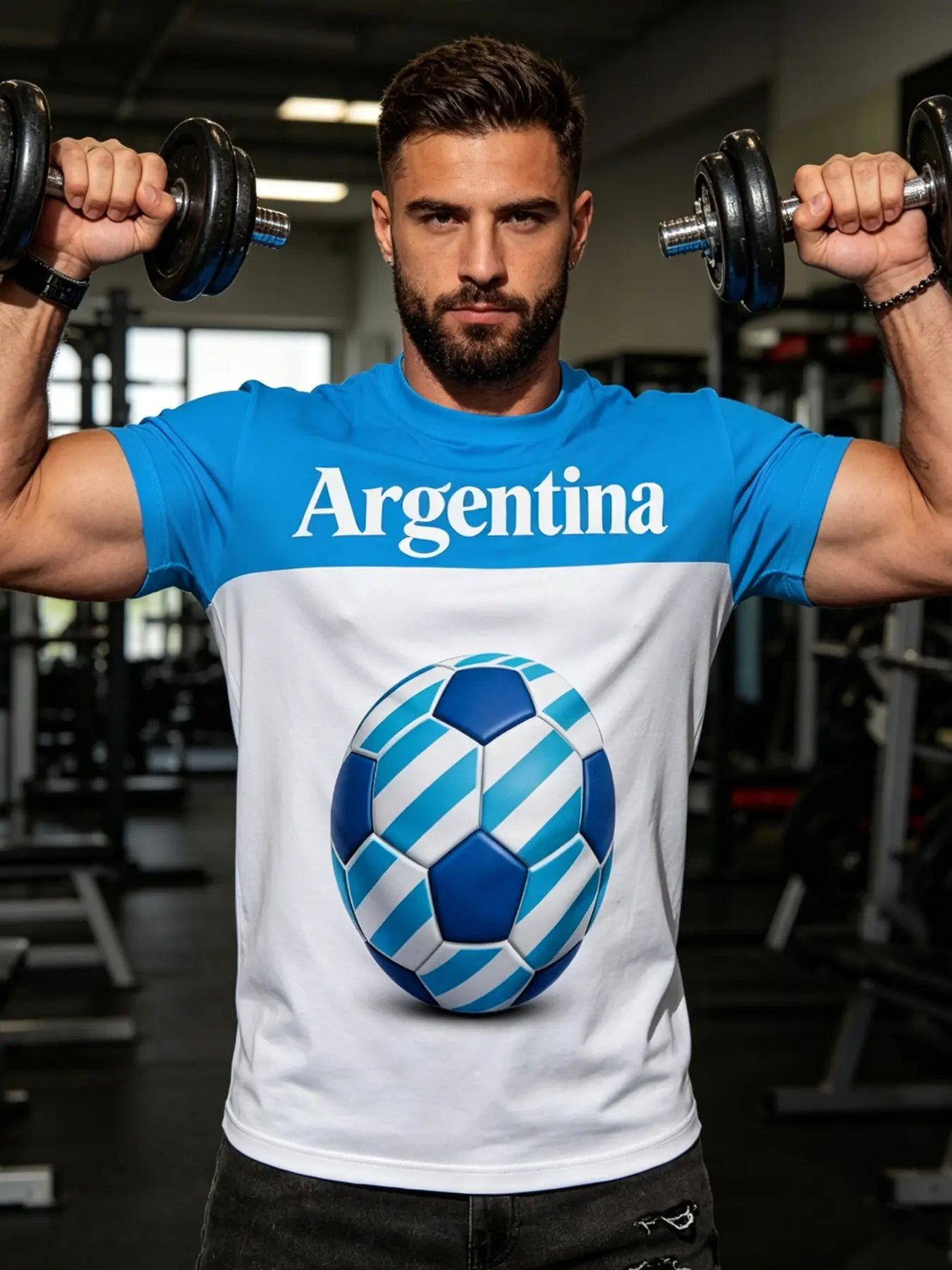 5. Argentina Football Theme 3D Print Men's Short Sleeve T-Shirt, Blue Patchwork, Casual Slim Fit, Summer Sports Fashion