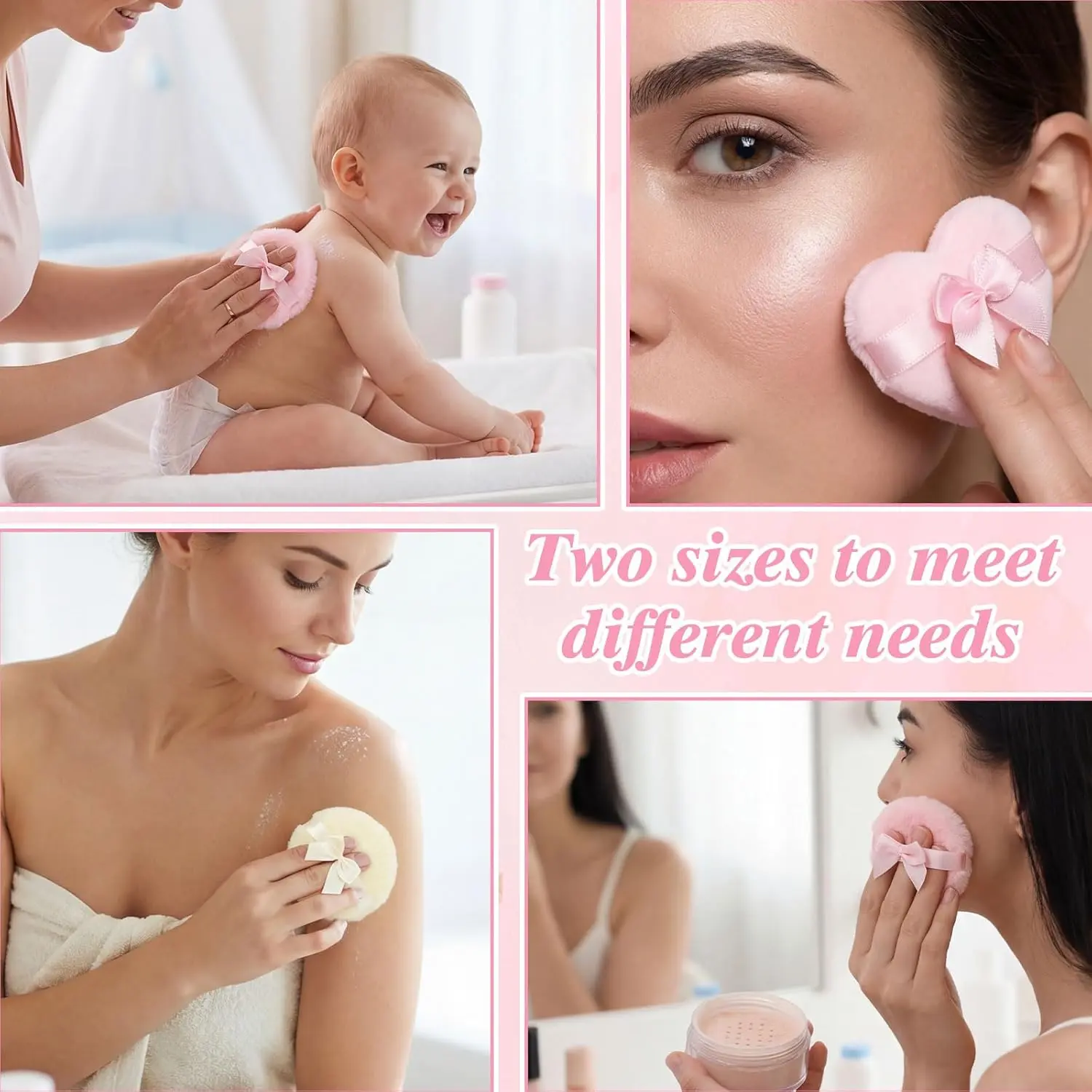 ·Different Size Combinations: The large body puff, with a diameter of 3.93 inches, fits perfectly with the 4.13-inch powder container, that's gentle on skin, ideal for loose powder, body powder, or applying shimmer. The 2.4 * 2-inch mini heart-shaped puffs add even more functionality