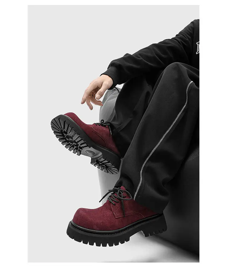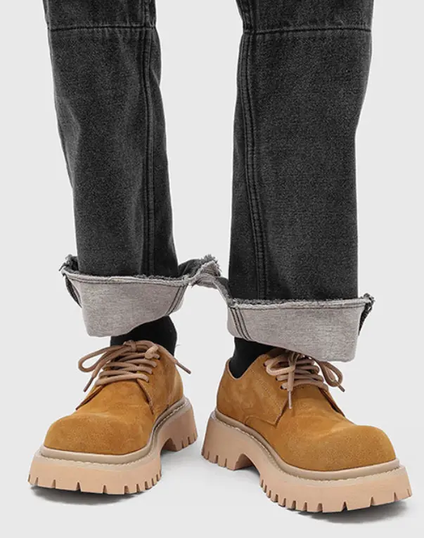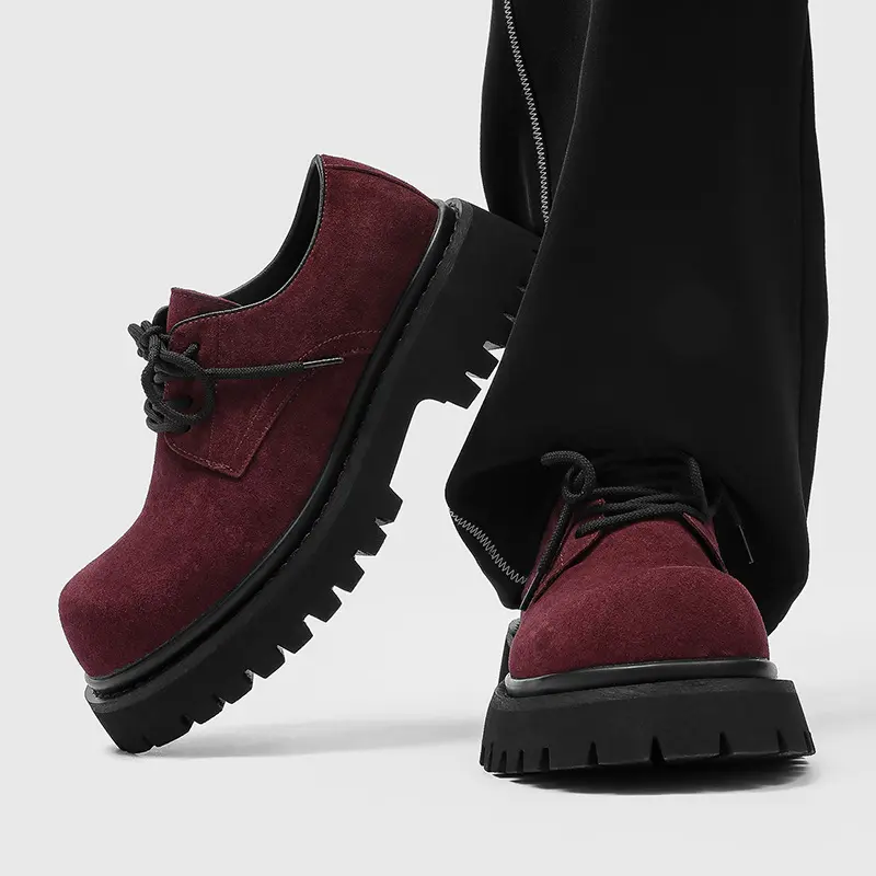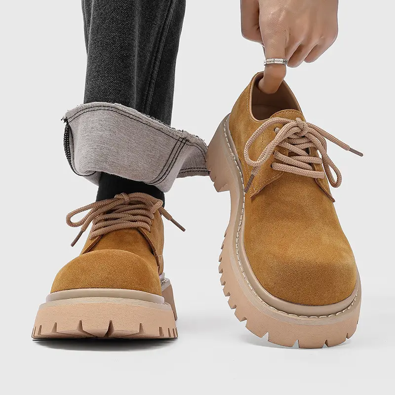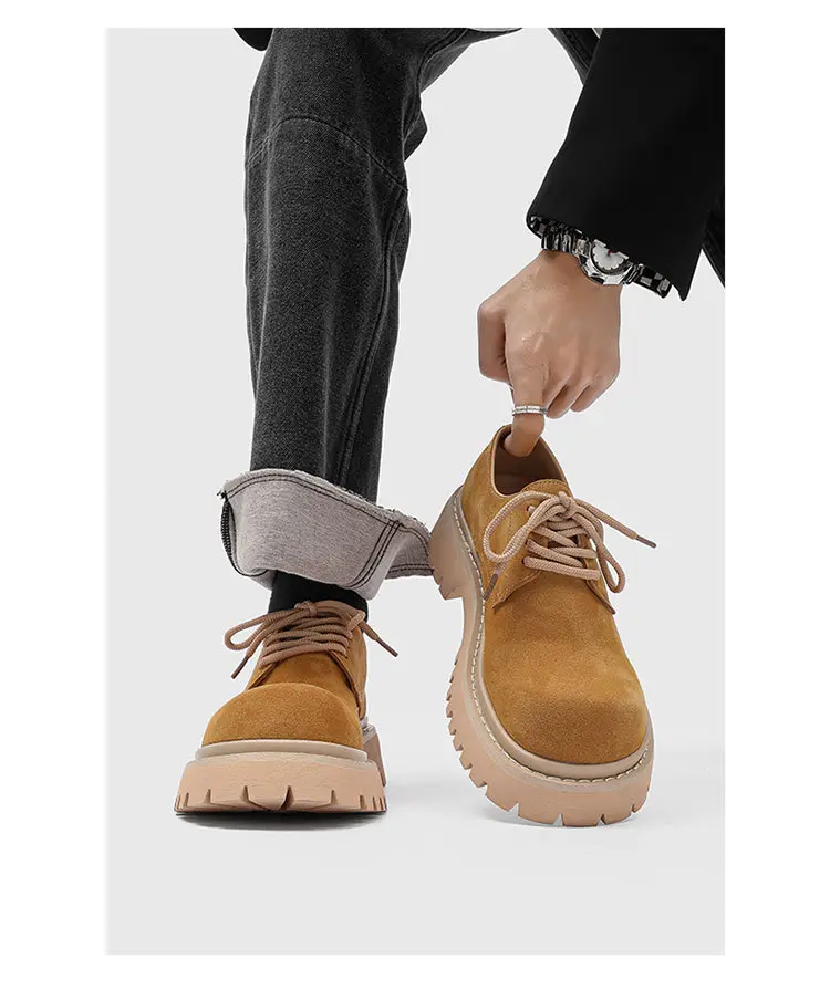 Men's Retro Platform Suede Shoes Big Toe Work Style Street Fashion Slim Leg