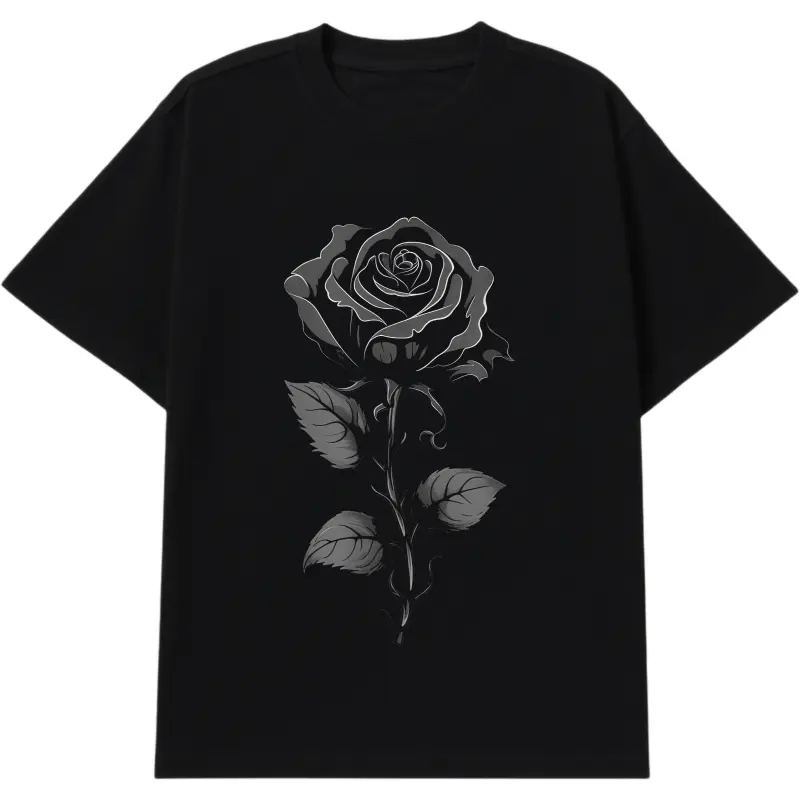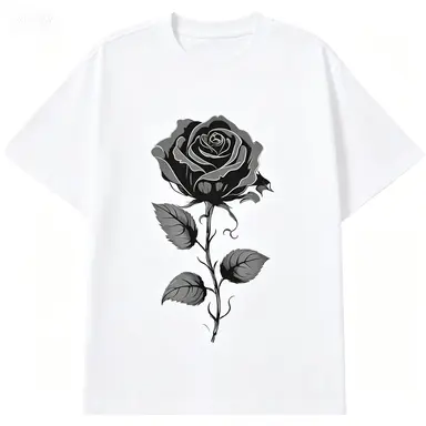 Monochrome Rose GraphicStriking grayscale floral design brings a bold, romantic, and mysterious tone.