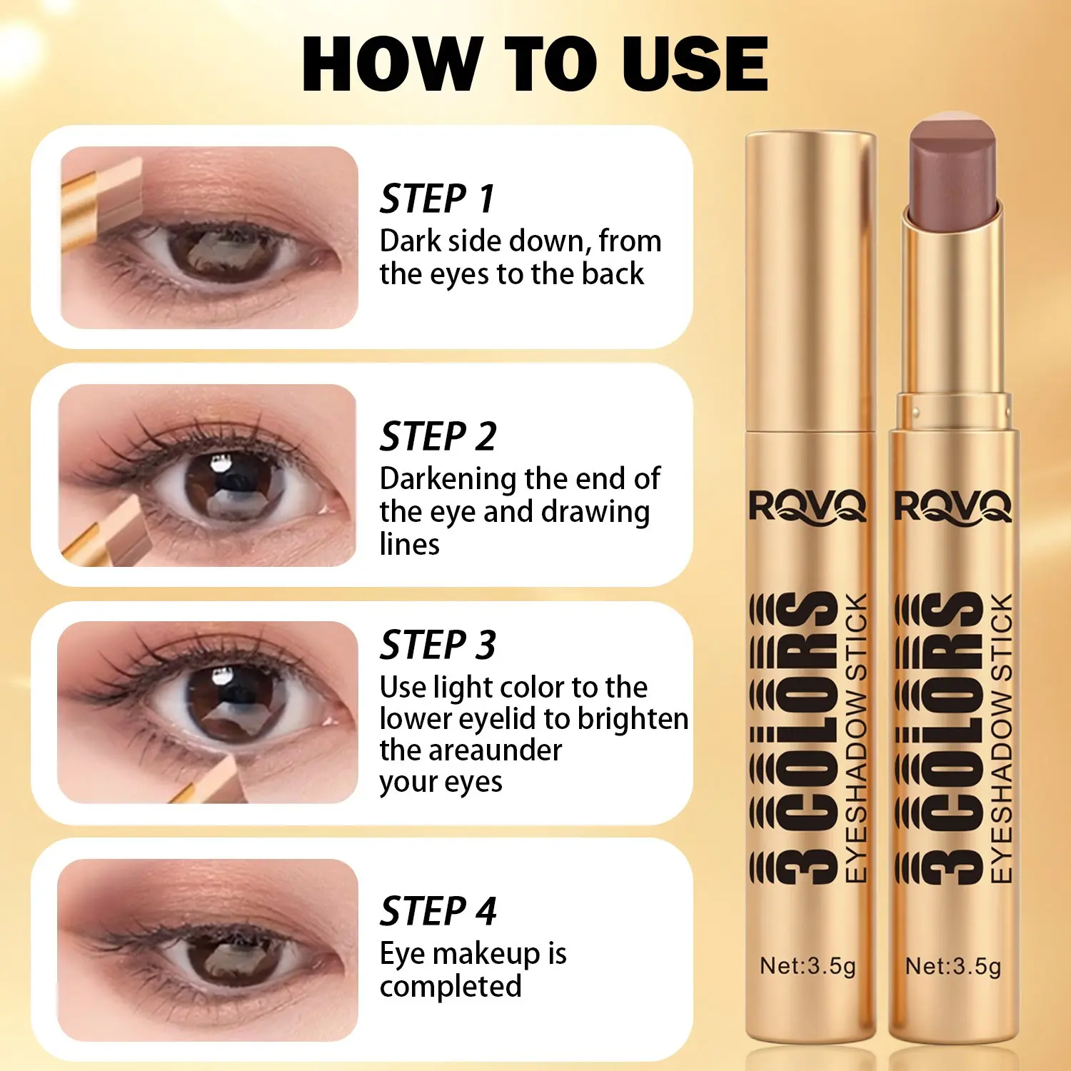 Three Color Eyeshadow Stick, Matte and Shimmer Finish, Waterproof, Easy Application, Perfect for All Makeup Styles, Ideal Valentine's Gift
