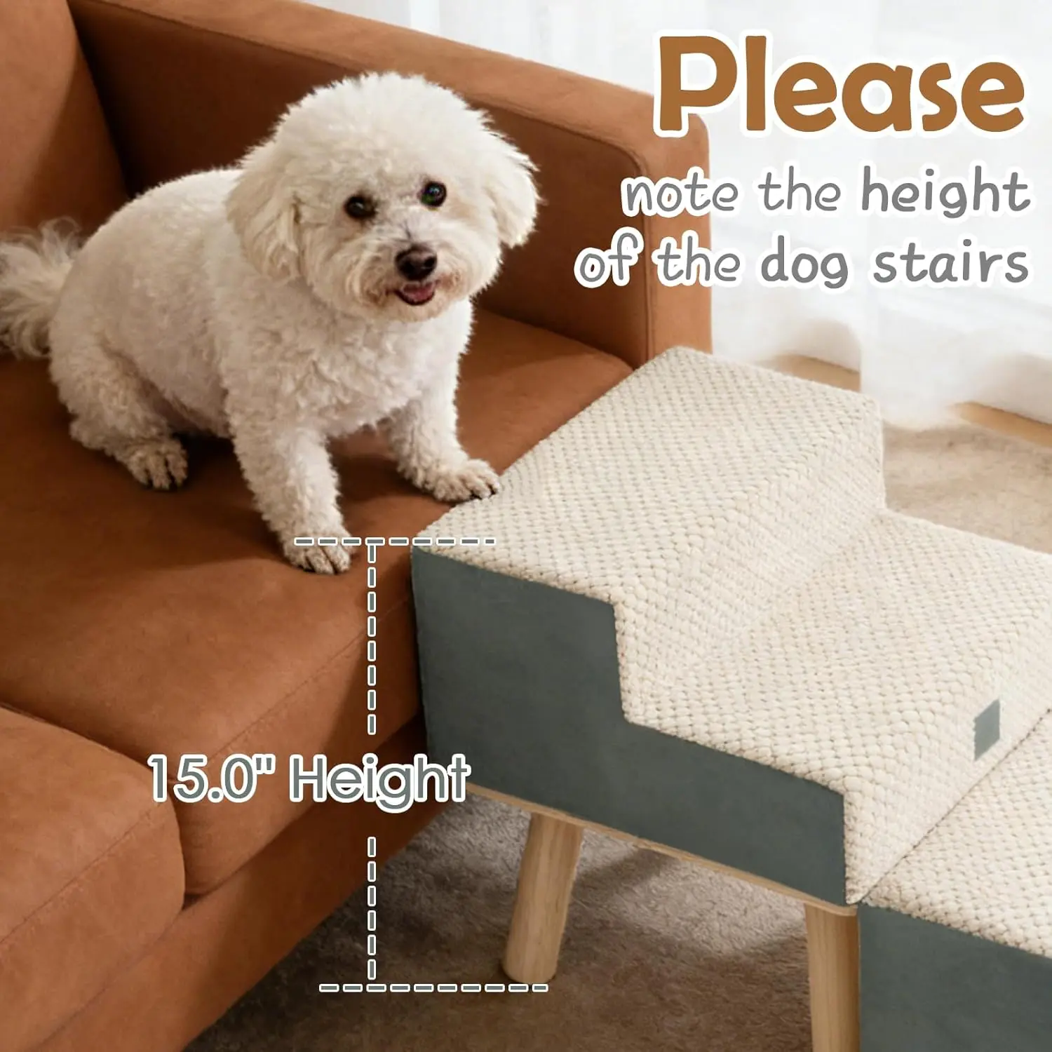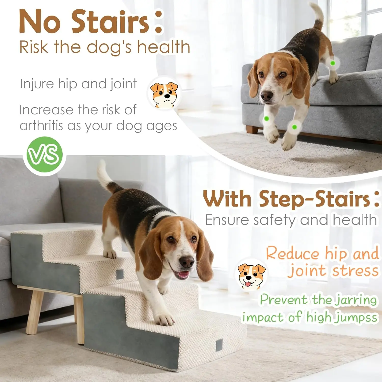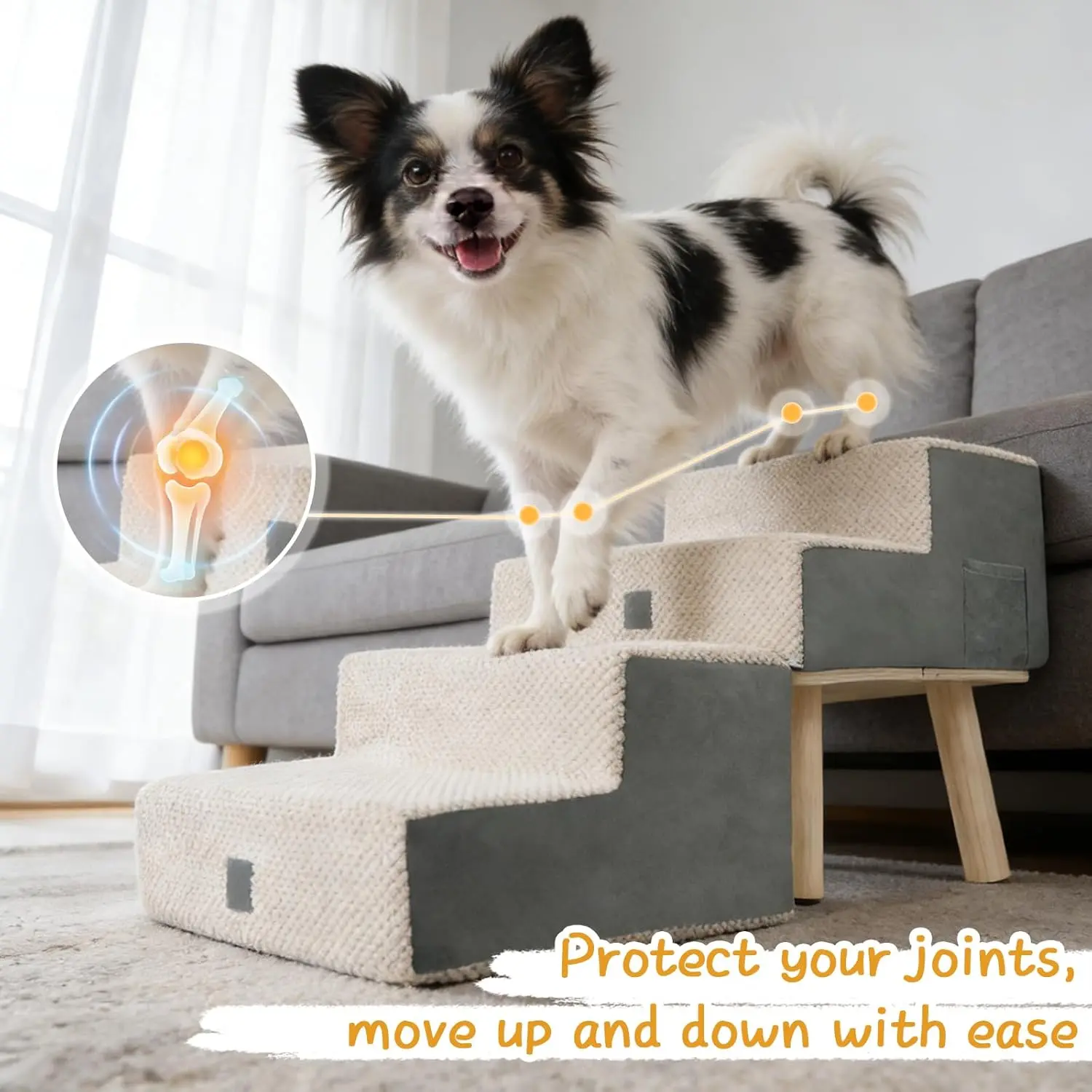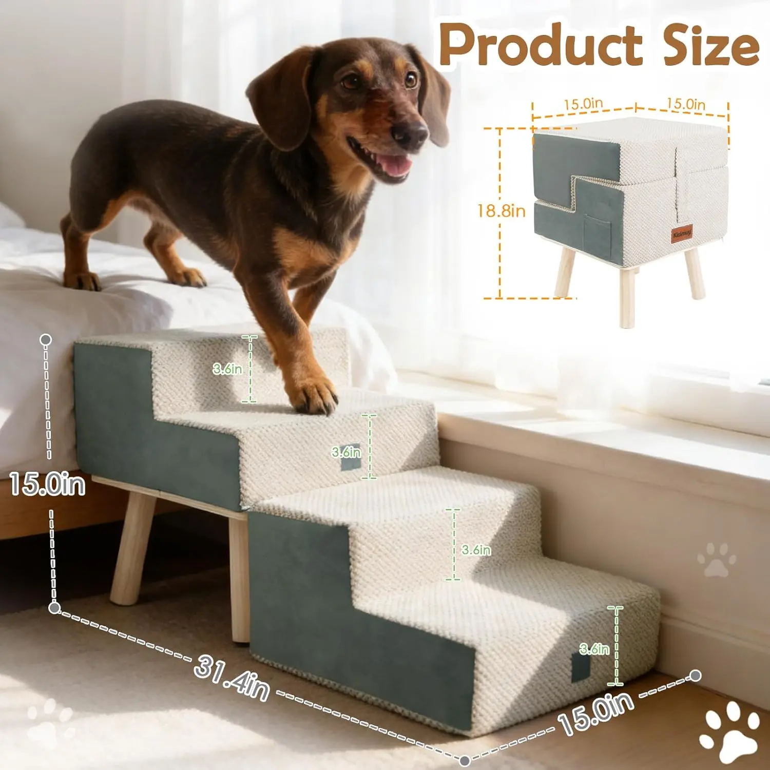 Dog Stairs for Small Dogs and Cats, 4-Step Dog Ramp for Couch and Bed, Foldable 2-in-1 Wooden Pet Steps for Puppy, Split Ottoman Design, Beige