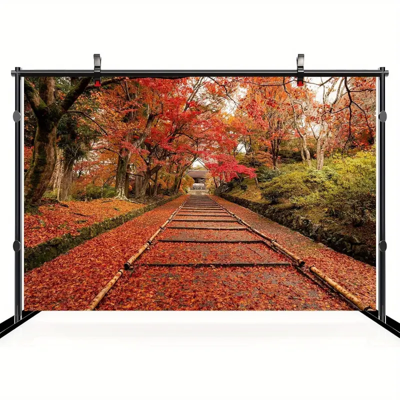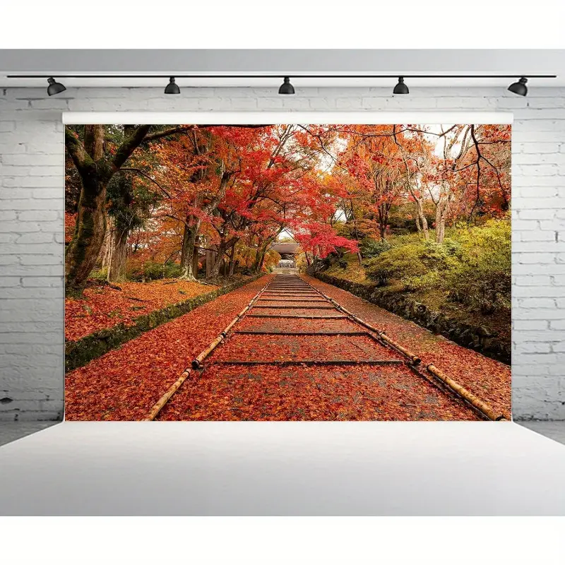 1pc 51" x 60" Japan Tapestry Wall Hanging, 100% Polyester Peach Skin Velvet, Woven, Transverse Orientation, >200g/㎡, Use Without Electricity, Japanese Fallen Red Leaves at Bishamondo, Kyoto'S Outskirt District Autumn Scenery Background, for