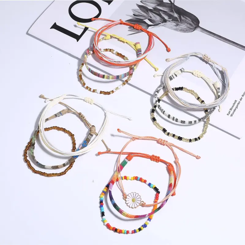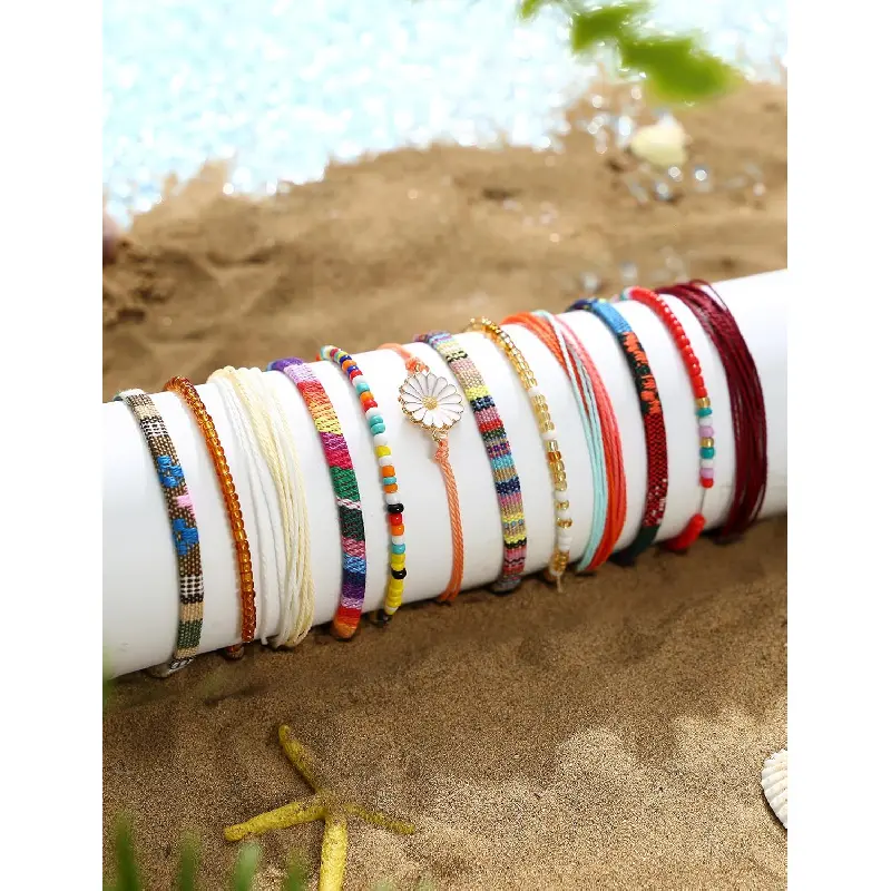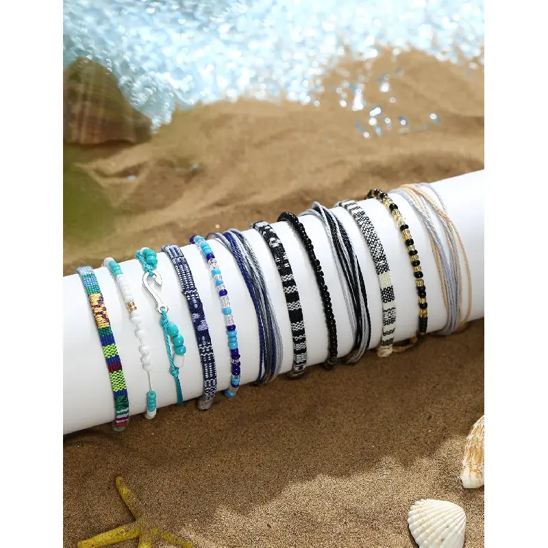 Pieces Waterproof String Bracelets for Women Surfer Wave Boho Bracelet Adjustable Handmade Friendship Bracelet String Ocean Beach Boho Bracelets Anklets for Women