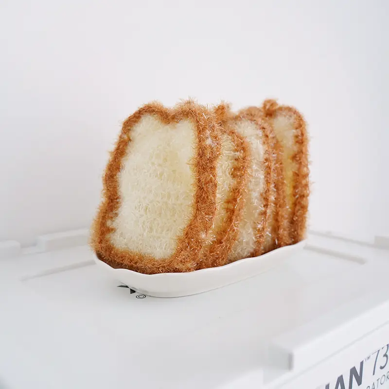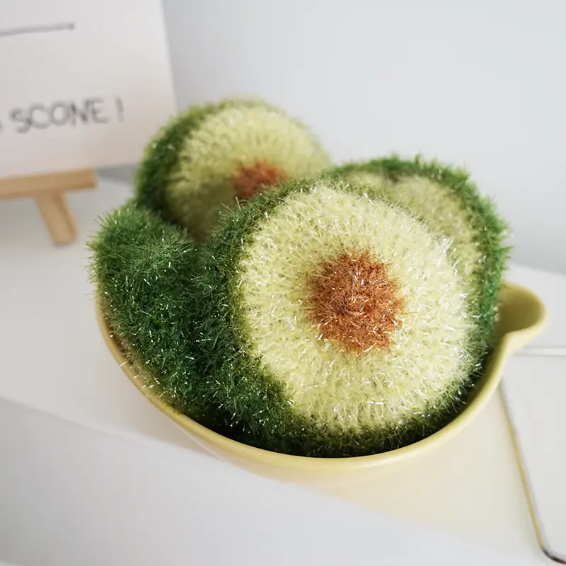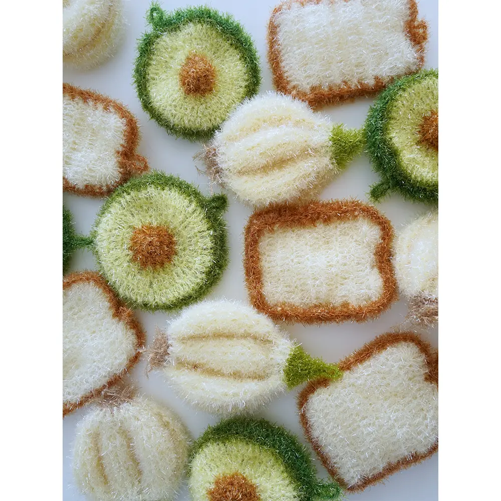 [3-Pack] Kitchen Cleaning Dishcloths Imitation Garlic Bread Dishcloths Avocado Scouring Pads Hand-Woven Cloths Sponges for Efficient Cleaning