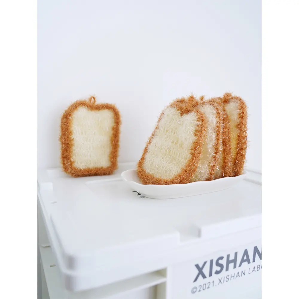 [3-Pack] Korean-style simulated avocado dishcloth, simulated toast bread dishcloth, simulated garlic head non-greasy cleaning cloth, easy to clean and lint-free household items