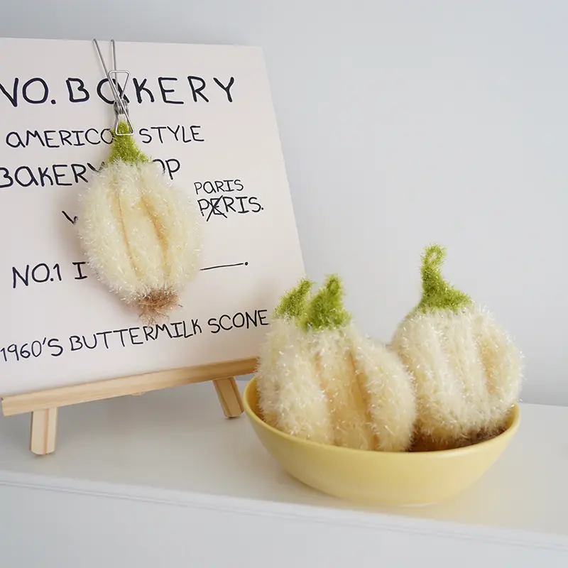 [3-piece set] Korean-style kitchen dishcloth, simulated garlic head cleaning cloth, hand-crocheted cleaning cloth, everyday dishwashing towel