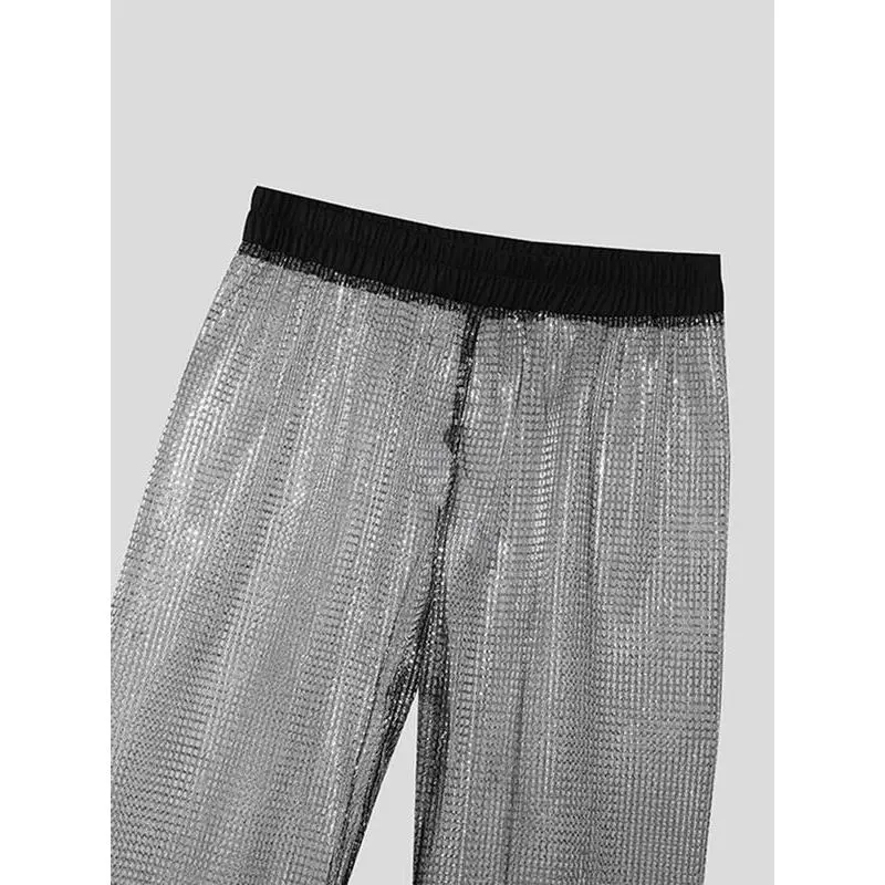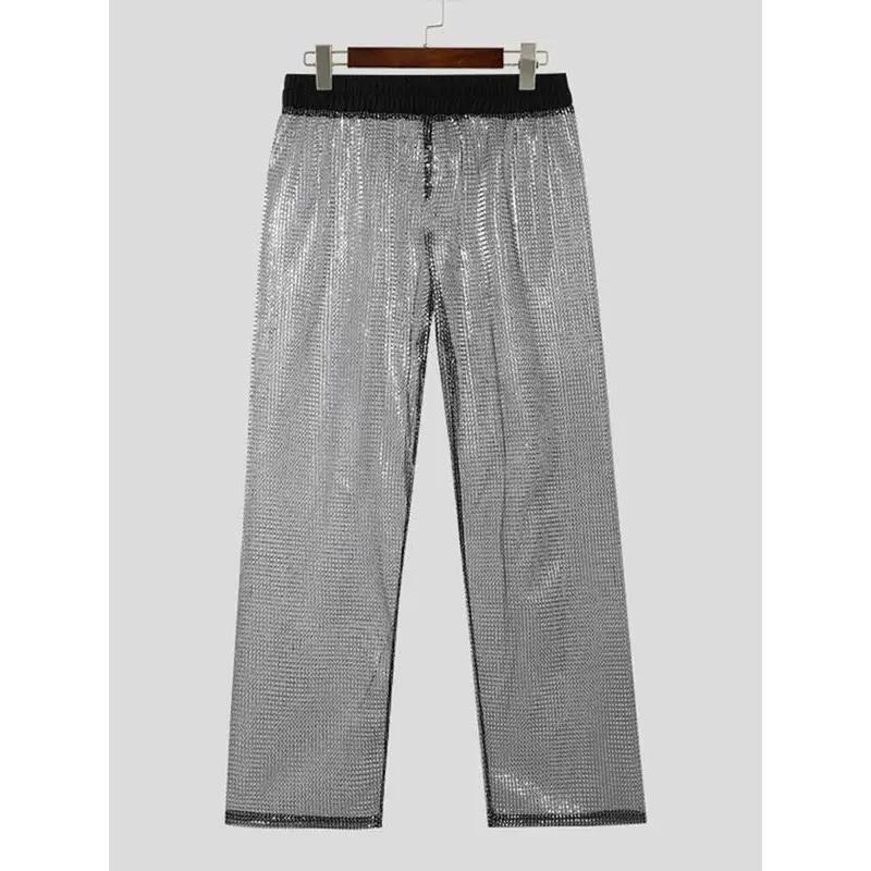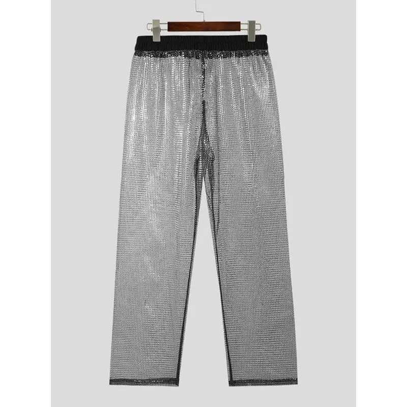 Men's Fashion Sexy Long Pants, Loose Transparent Sequins See-Through Pants, Suitable for Daily Wear
