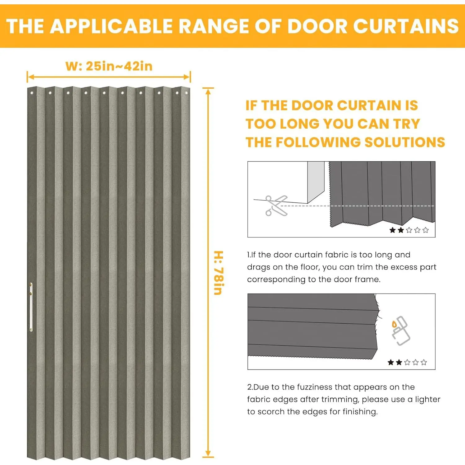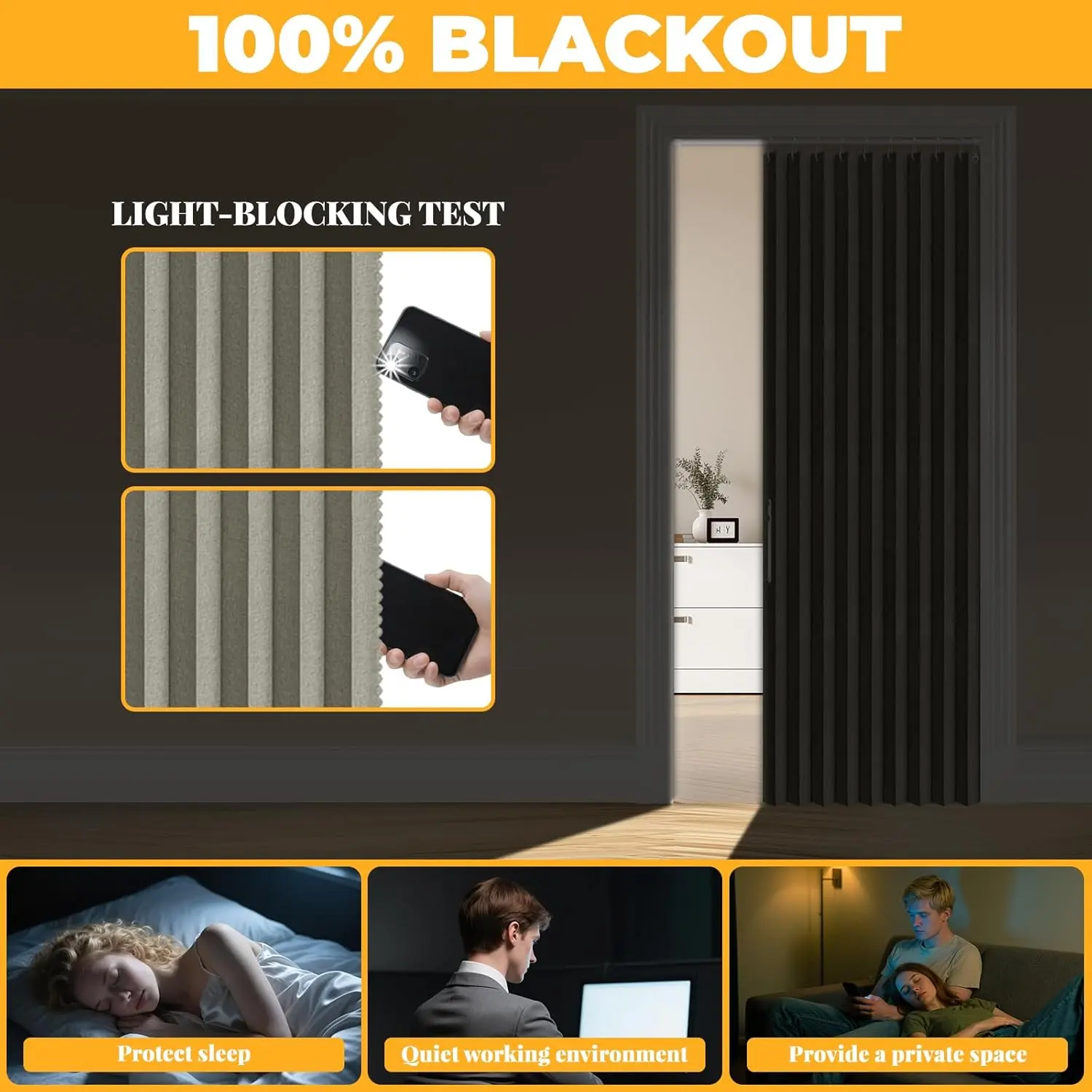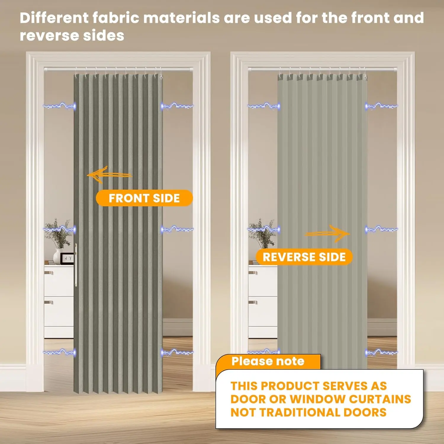 100% Blackout Accordion Door Magnetic Door Curtain Folding Closet Doors Curtain Invisible Applicable Bedroom Room Living Room Doorway (Grey 42" W x 78" L 1 Panel