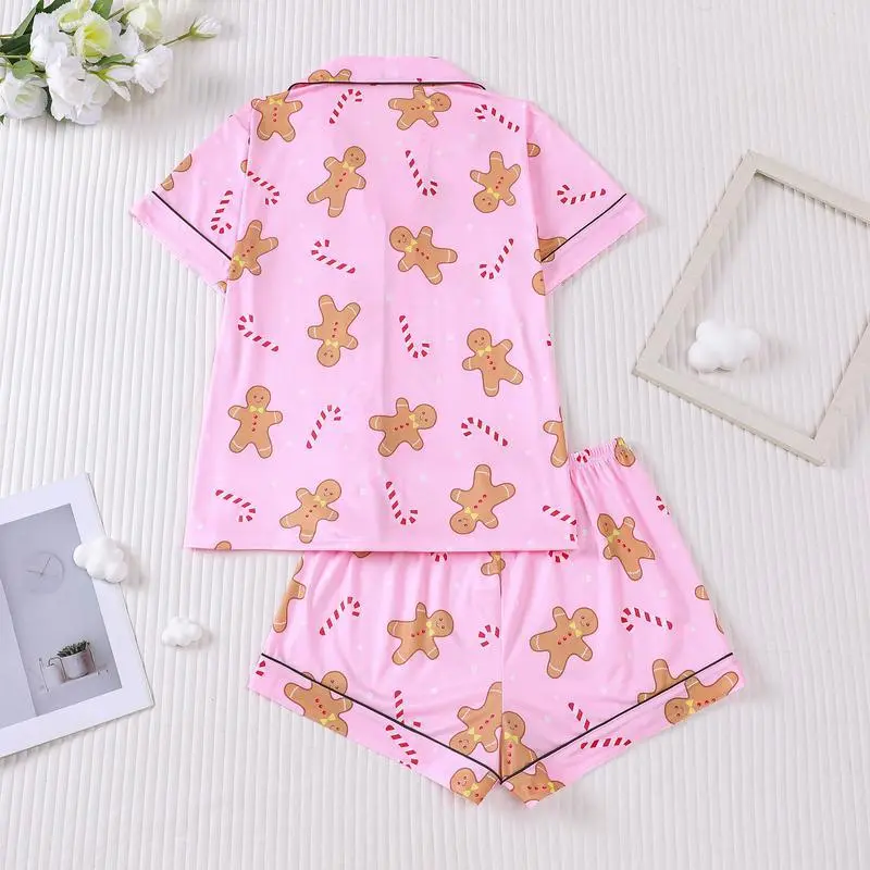 Women's Christmas Pajama Set Use this Women's Christmas Candy Cane Print Casual Pajama Set to welcome the holiday season. Set includes one top with pocket details and turn-down collar. It features short sleeves designed perfectly to deliver comfort. The matching shorts perfectly complement this outfit, making it especially great for wearing at home during the Christmas holiday. Stay warm and stylish during the festive season. Main Features : Great for home use: This Pajama Set Is Designed For Ultimate Relaxation At Home. Enjoy the comforts of your home during the Christmas season. This set combines practicality with festive spirit, ensuring you feel relaxed while celebrating.