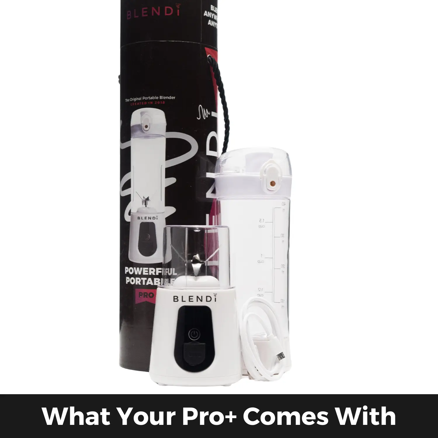 The Pro+ Portable Blender is cordless, portable, and powerful. Our portable blender is the perfect size to fit in any bag or purse and can blend a smoothie in seconds!