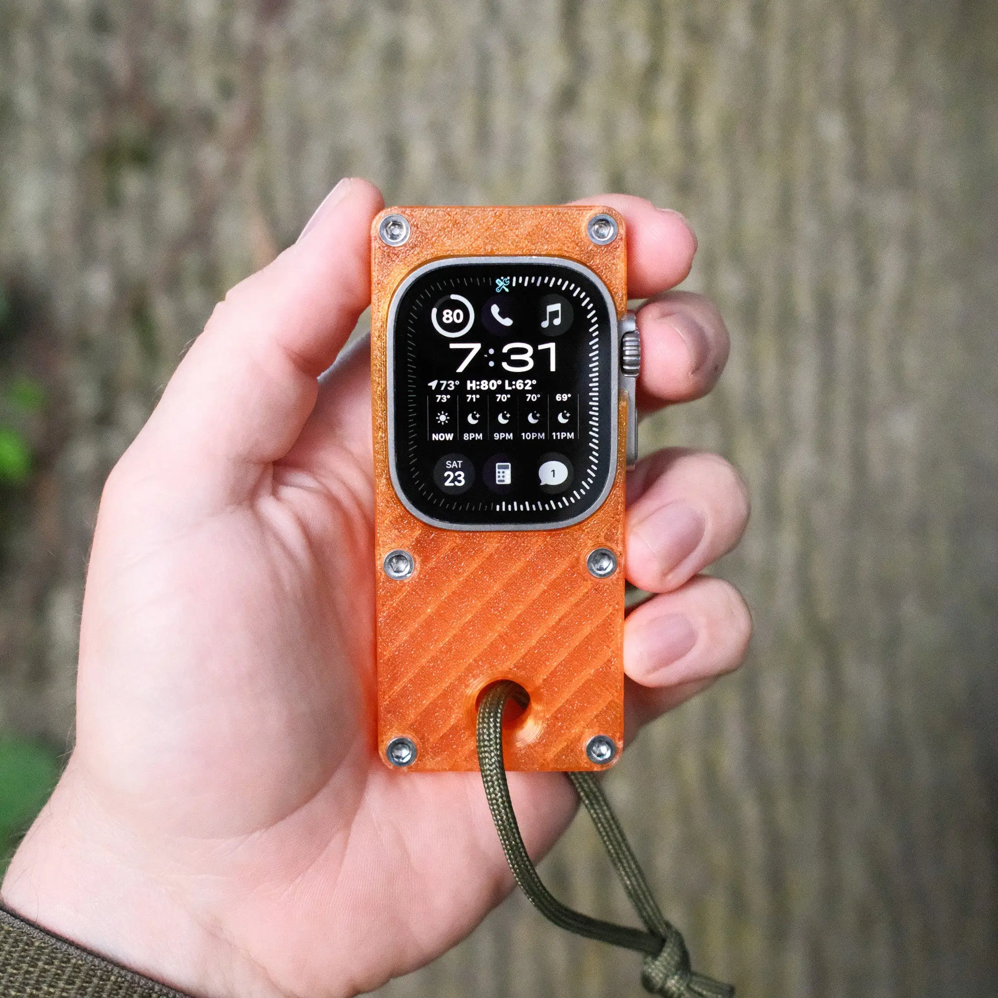 maybe sometimes a phone is too much and you just need to get by with the essentials. this case makes your Apple Watch Ultra more comfortable to hold in hand and use like a small smart device, while freeing up your wrist for you know, a real watch.