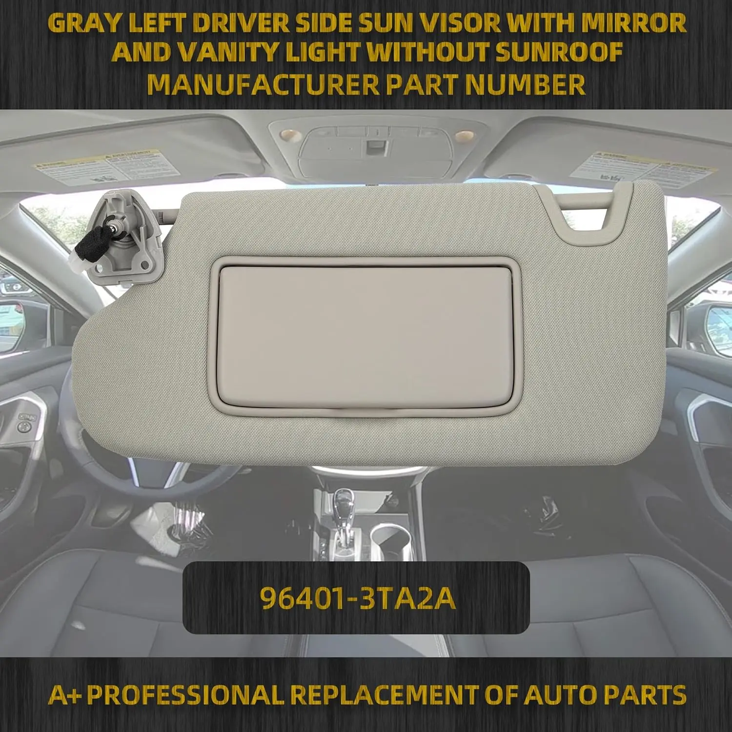 Gray Left Driver Side Sun Visor Compatible with Nissan Altima 2013 2014 2015 2016 2017 2018 with Mirror and Vanity Light Without Sunroof Replaces # 96401-3TA2A