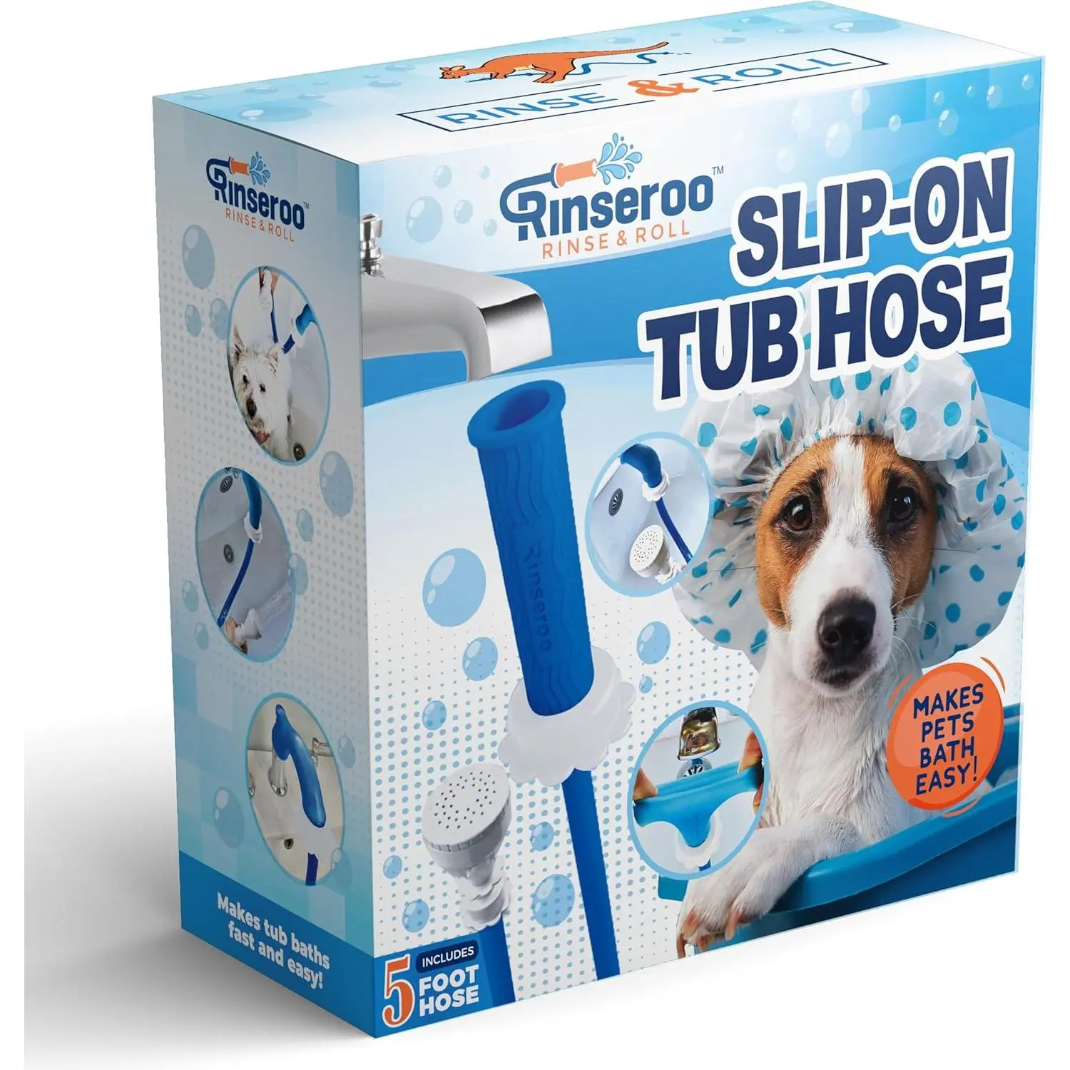 Slip-On Bathtub Faucet Sprayer Attachment. Ultra-Flex Dog Shower Adapter Portable With Pet Showerhead. Attach to Tub Spout 5 Foot Hose. No Install for Speedy Washing