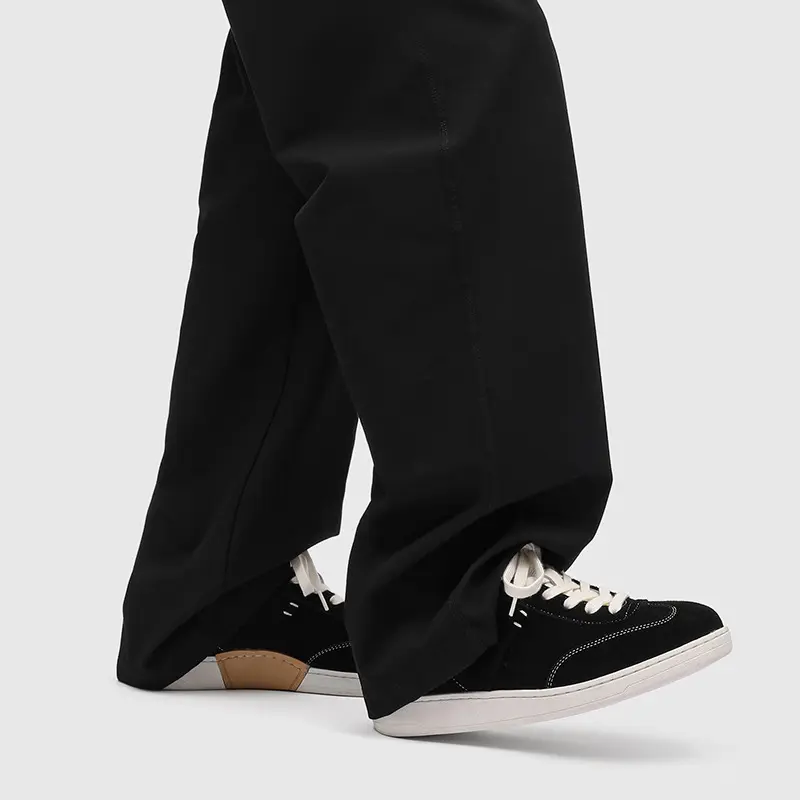Men's Cleanfit Platform Sneakers Black & White Canvas Wide Laces Slim Leg Street Fashion