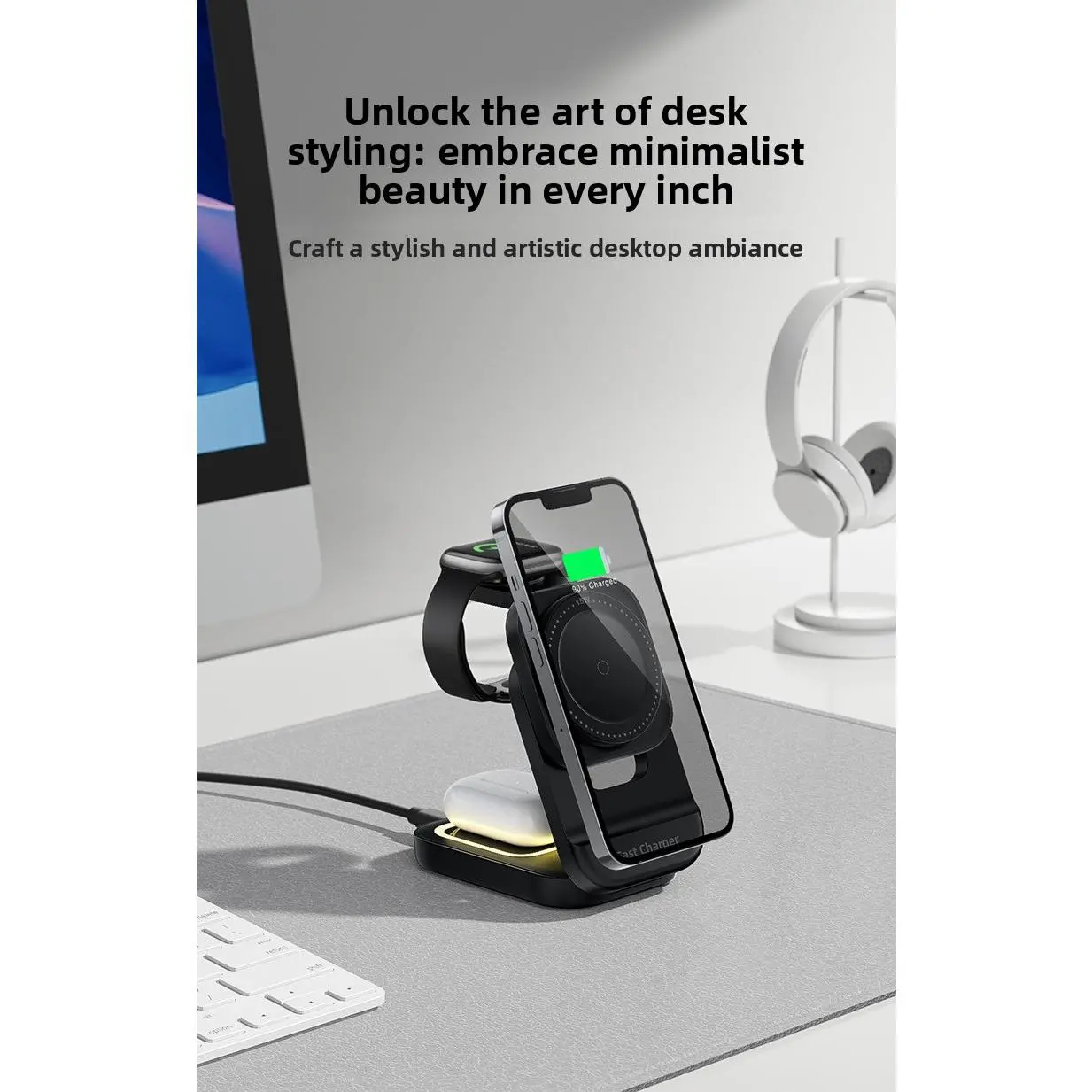 New foldable, retractable, magnetic 3-in-1 wireless charger suitable for Apple phone stand wireless charging