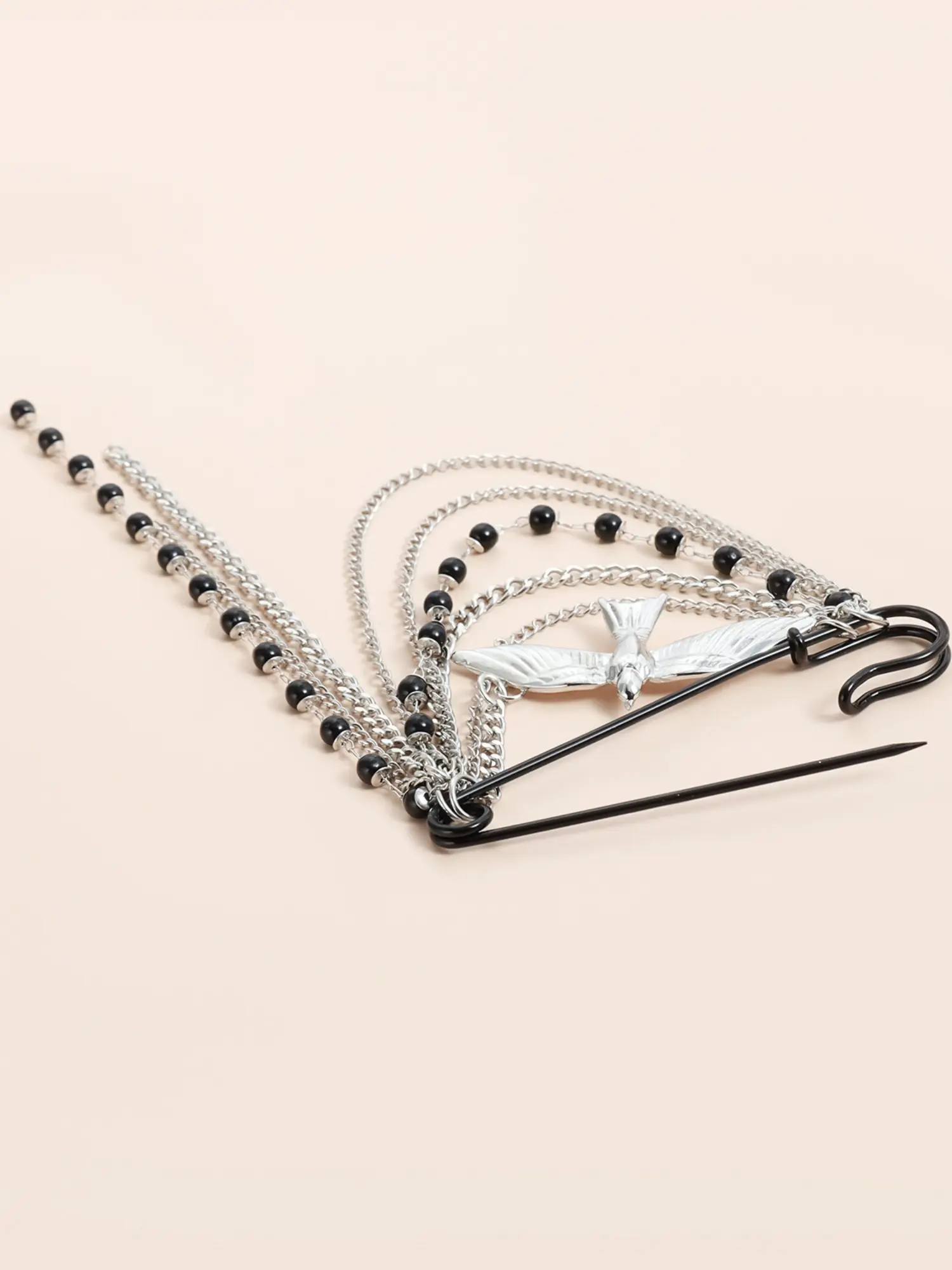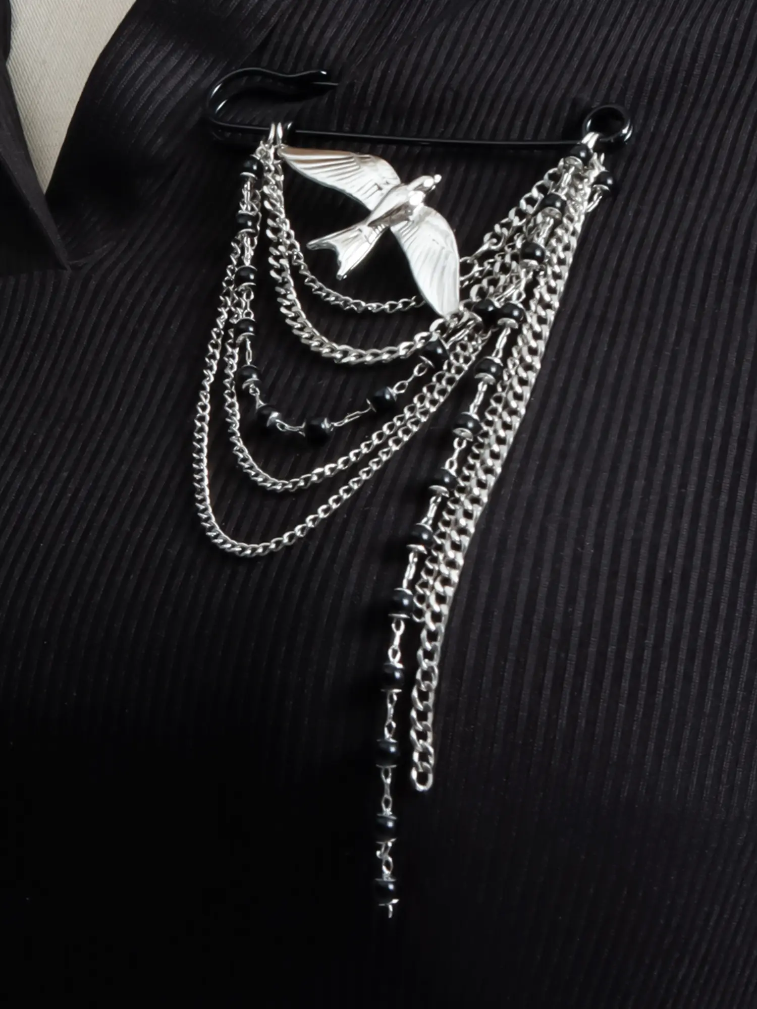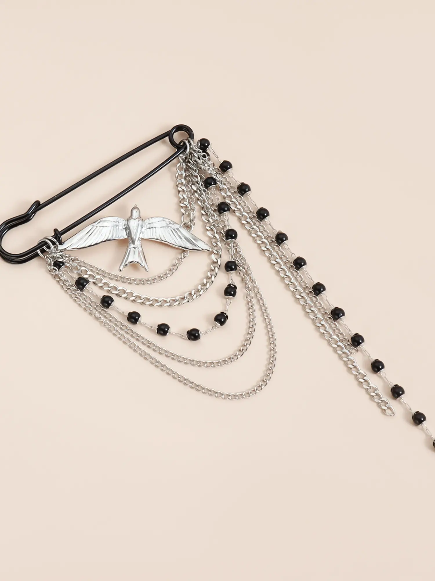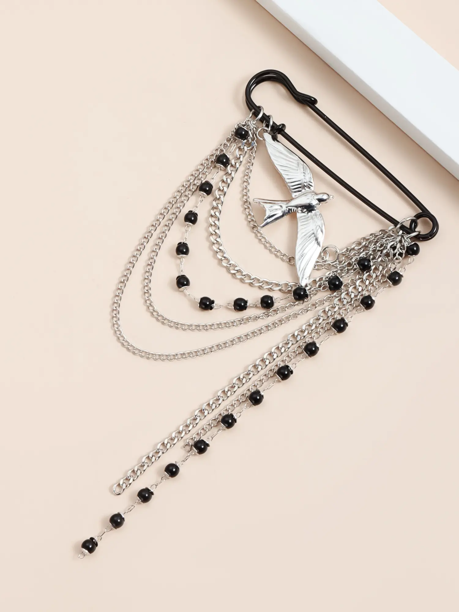 This fashion swallow multi-layer chain brooch features a delicate swallow design with beaded fringe tassels, showing an elegant and stylish temperament. The multi-layer chain structure enhances the sense of hierarchy, making it a delicate and eye-catching accessory.