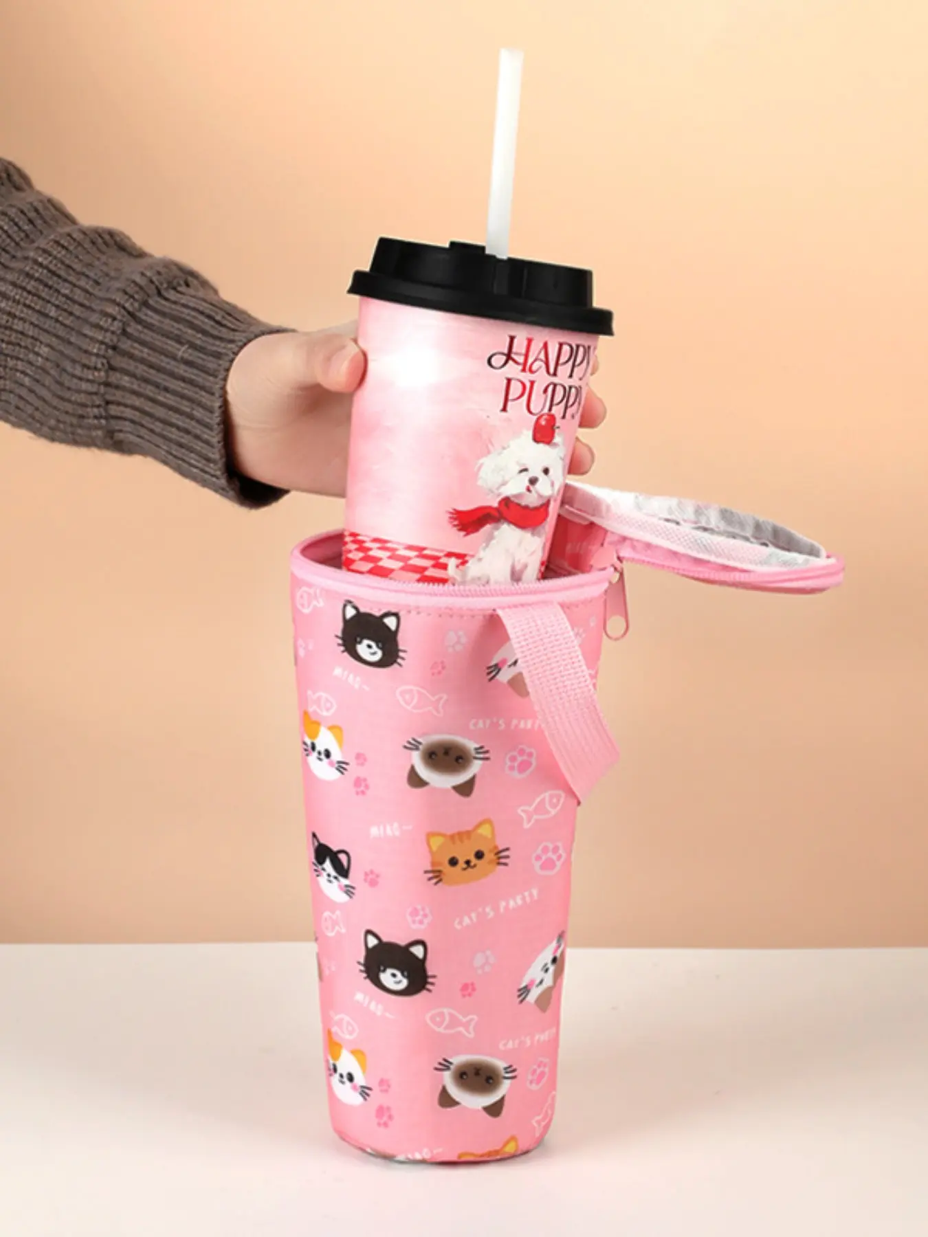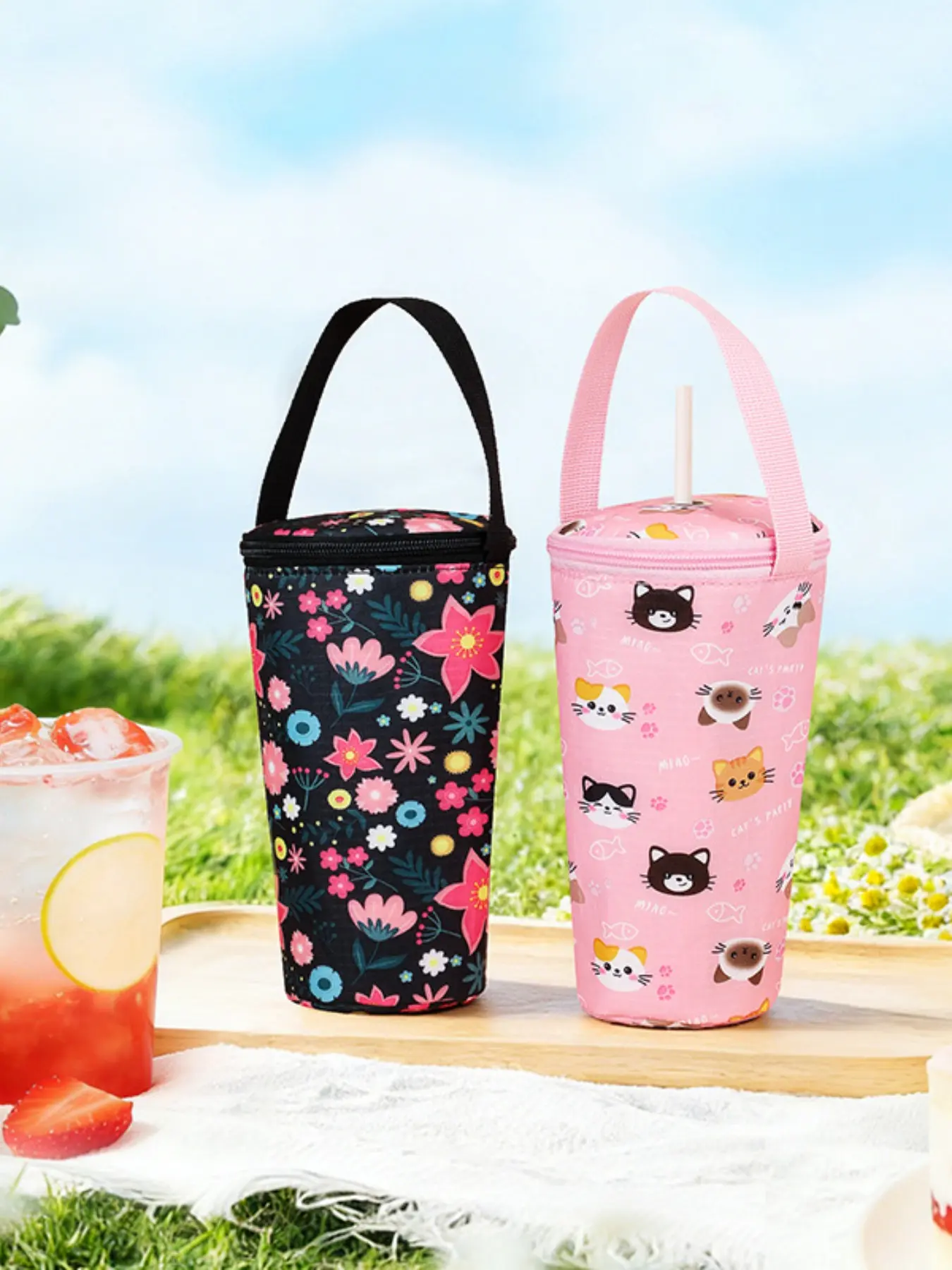 Cute Cartoon Handheld Water Cup Insulation Bag, Milk Tea Cup Insulation Sleeve, Water Cup Dustproof Storage Pouch, Portable Drinkware Organizer