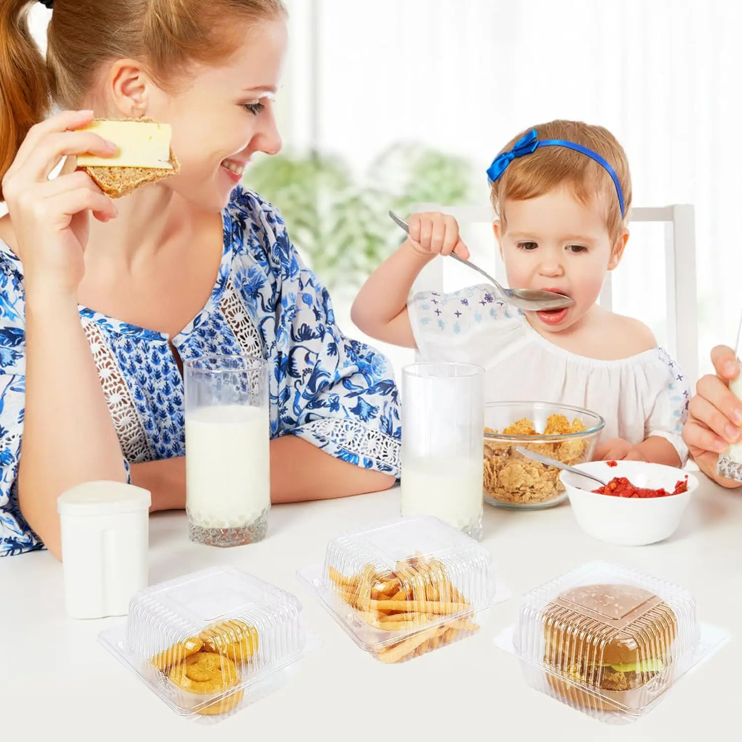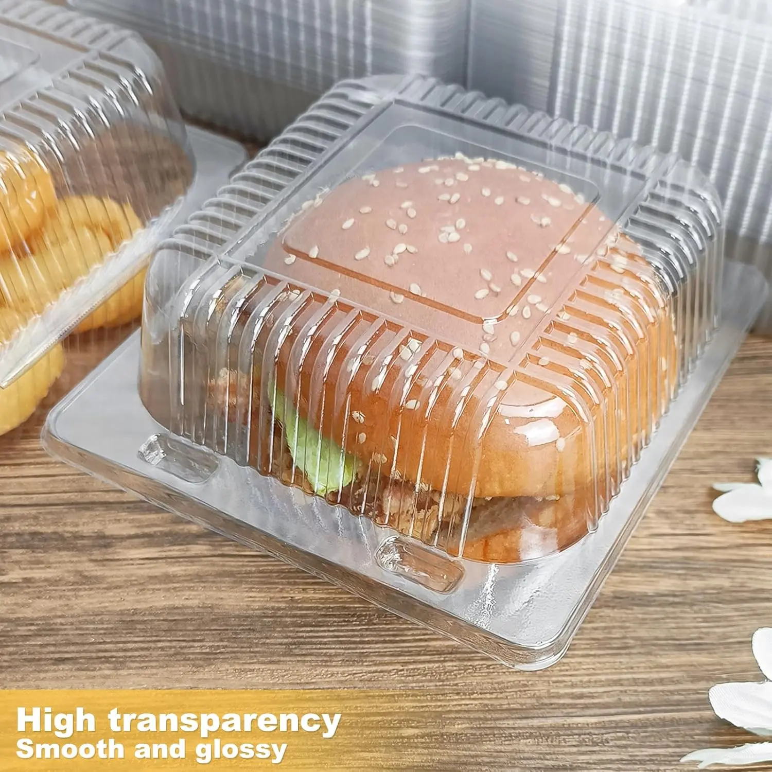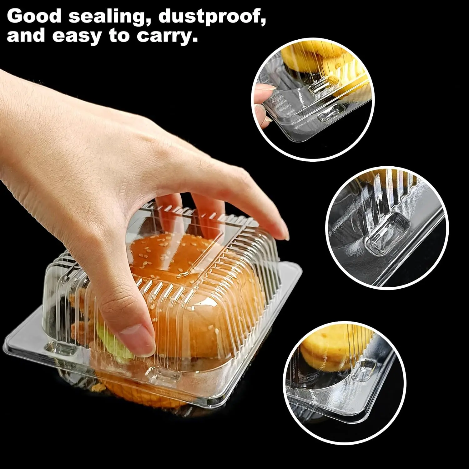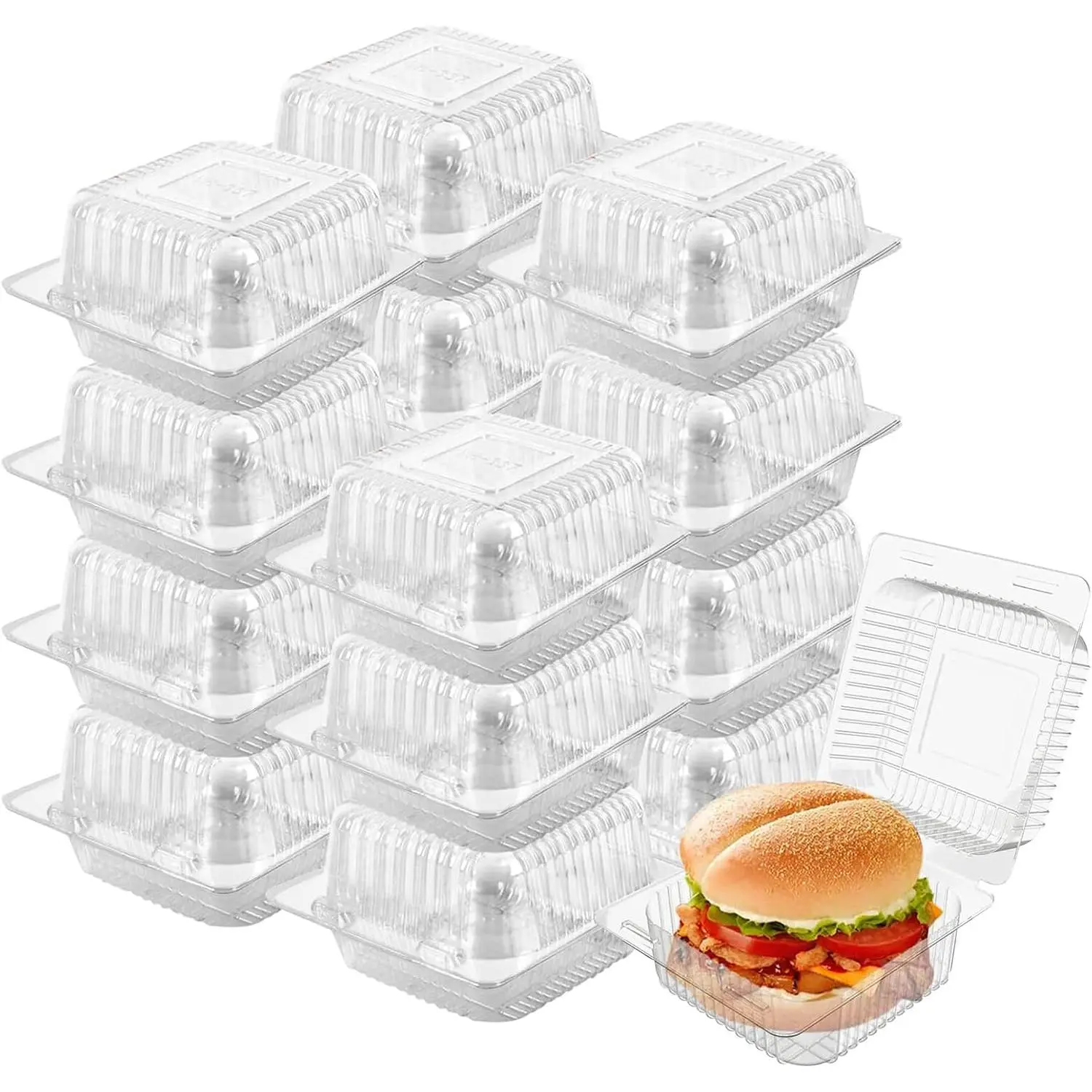 100 Pack 5 x 5 inch Clear Plastic Disposable Clamshell Container,Hinged Take Out Clamshell Dessert Container with Lid Takeout Tray Disposable Food Clamshell Containers for Dessert,Cakes,Sandwiches