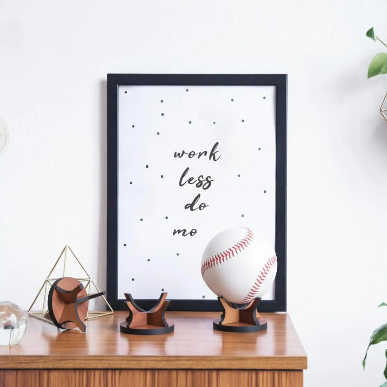 3 Pcs Walnut Small Ball Stand Holder Sport Ball Display Rack Baseball Display Stand with 3 Pieces Non-slip Rubber Pads for Baseball Golf Softball Tennis Spheres, Wood