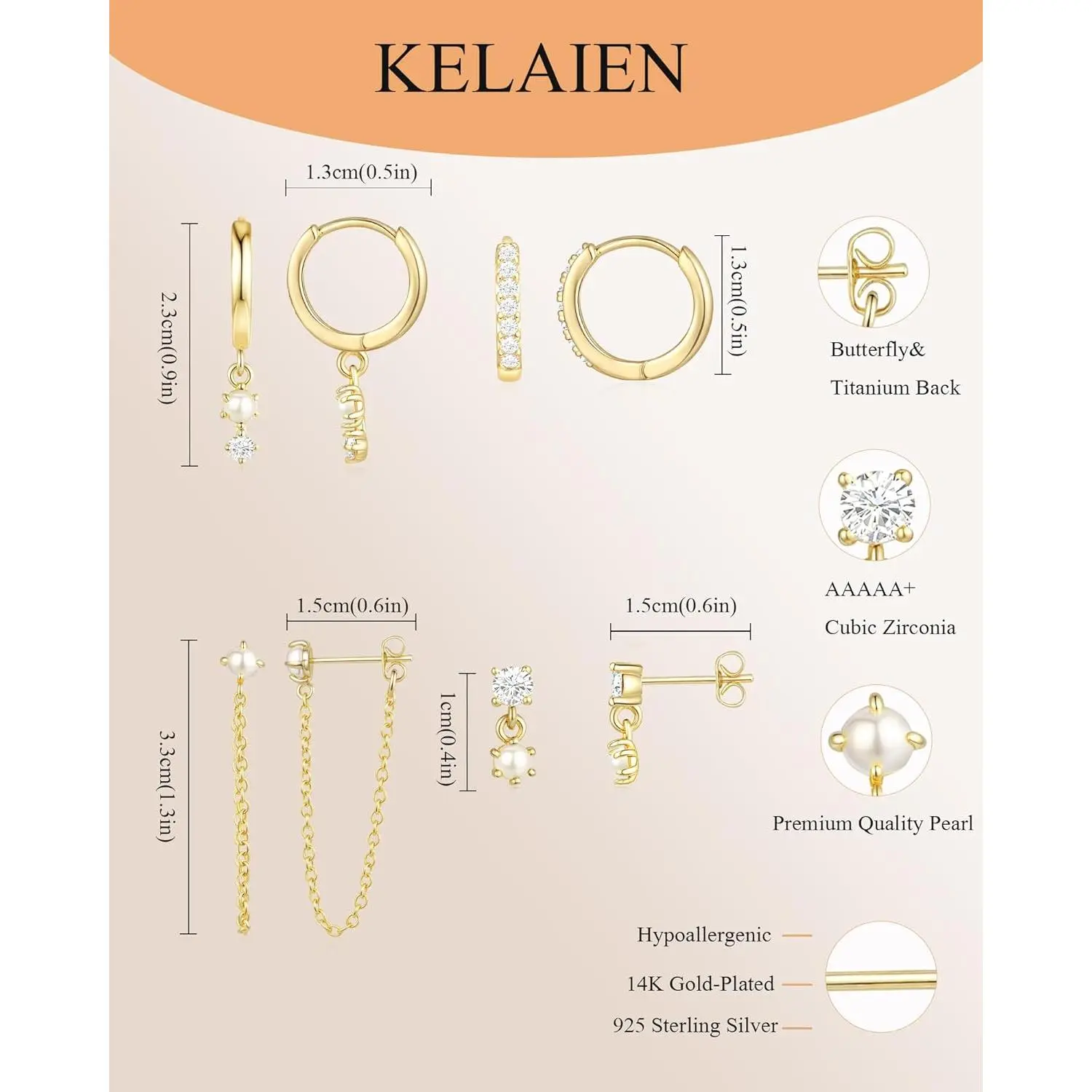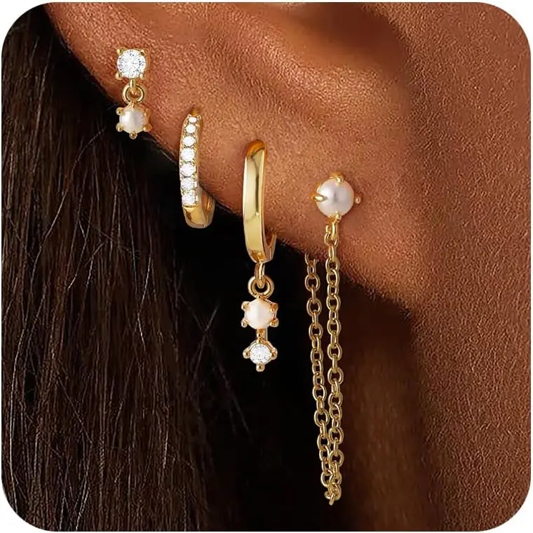 Gold Silver Earrings for Women Trendy 14K Gold Plated Dangle Hypoallergenic Cartilage Earrings Small 925 Sterling Silver Post Dainty Hoop Drop Pearl Earring Stacks Set Huggie Chain Earrings Jewelry