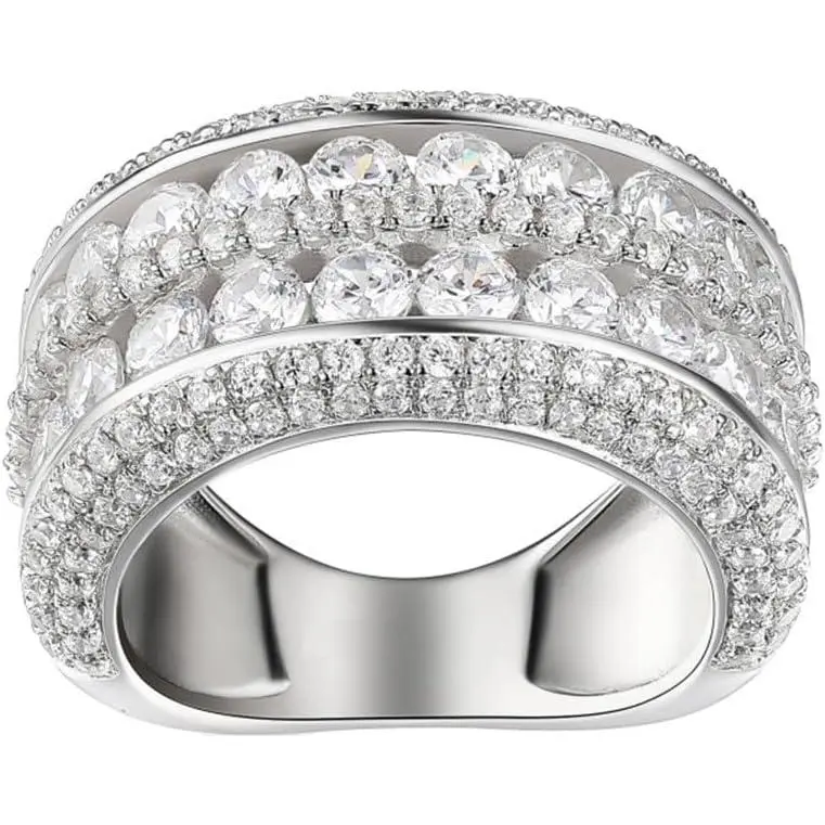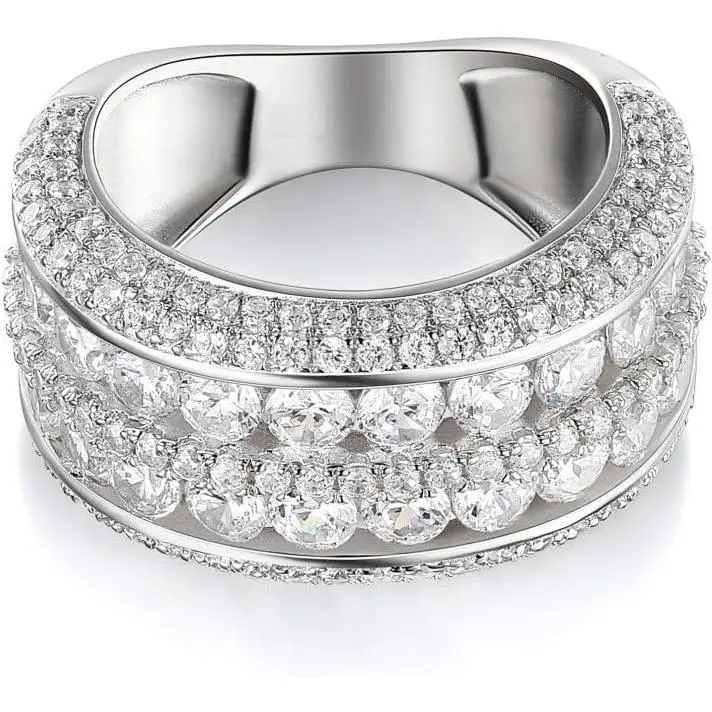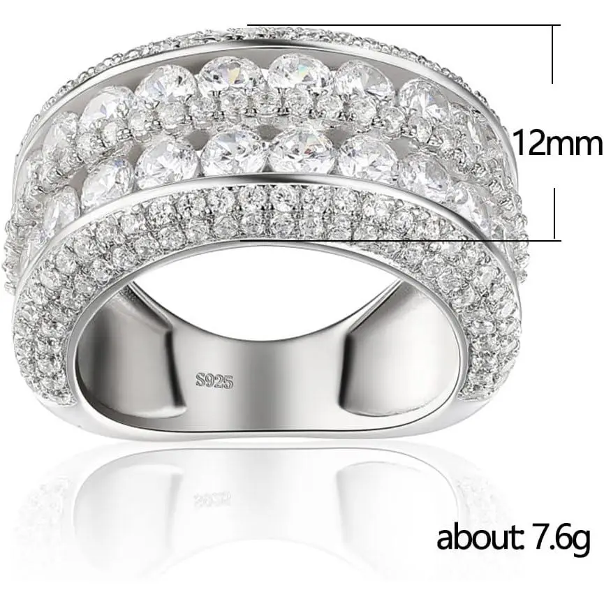 2 Rows Round Cut Shiny Full Diamond Ring Cubic Zirconia Cocktail Rings CZ Diamond Ring Eternity Engagement Wedding Band Ring for Women