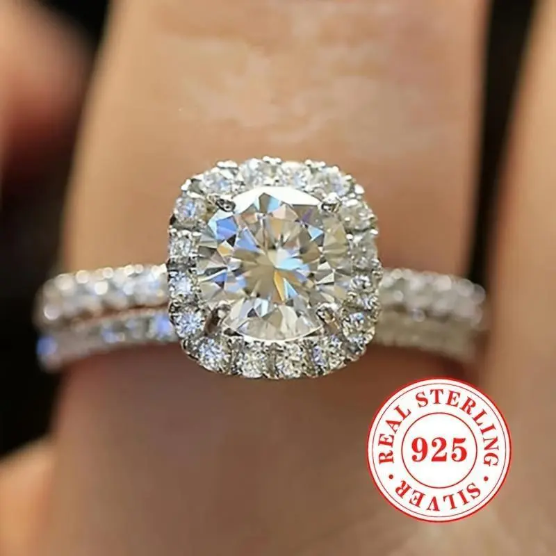 Valentine's Day 2-Piece Set for Women - 4.9g 925 Sterling Silver Elegant Luxurious April Birthday Wedding Banquet Ring Set with Classic Four-Prong Design gifts2