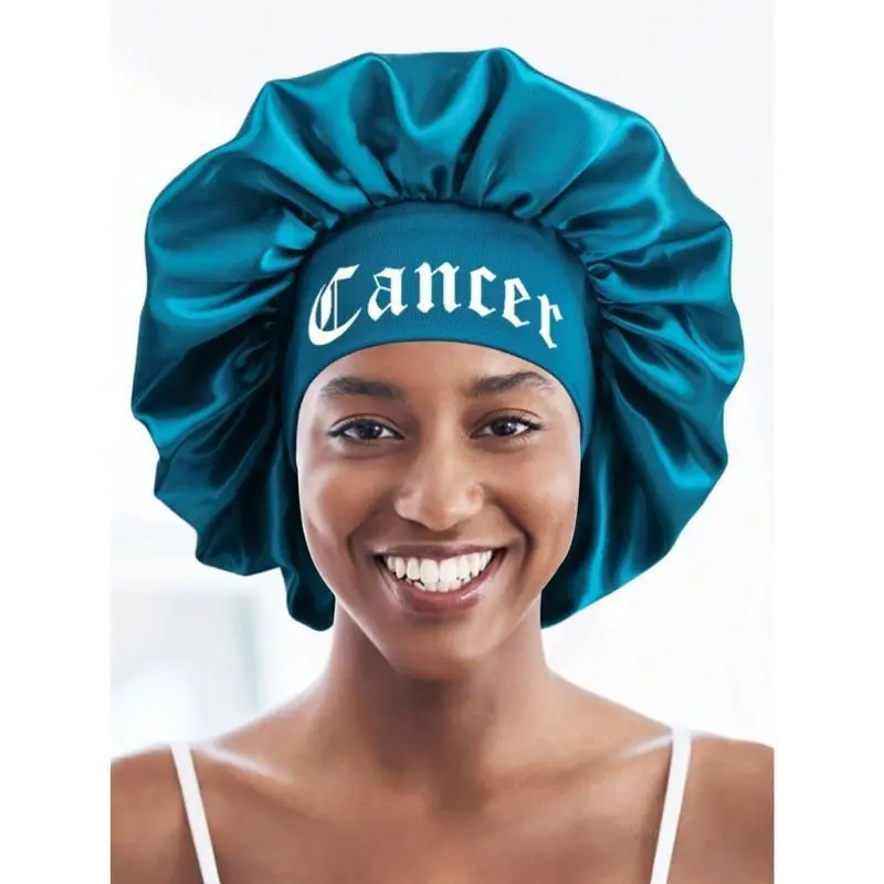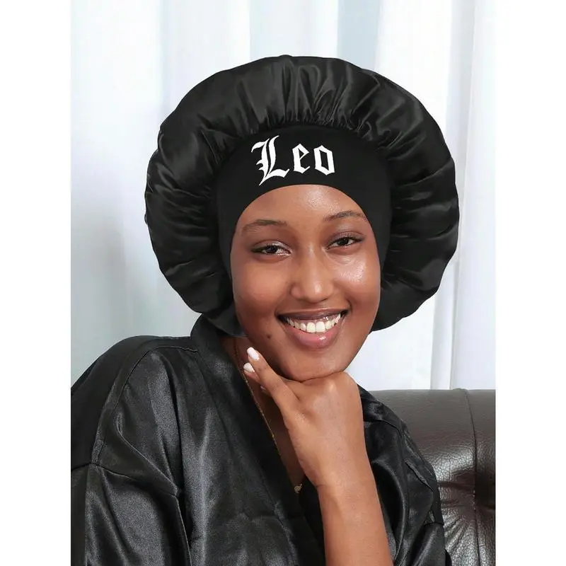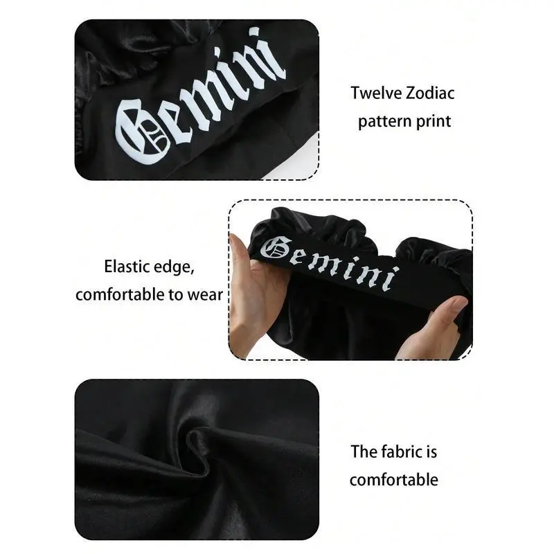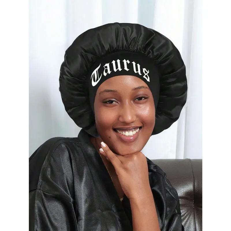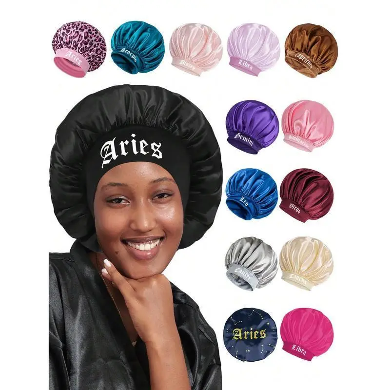 1PC Bonnet Printed 12 Constellations Personalization Hair Caps For Sleeping Satin Wide Brimmed Eastic Cap For Curly And Straight Hair Quick Drying Ponycap Black Hat Shower gifts2Gift