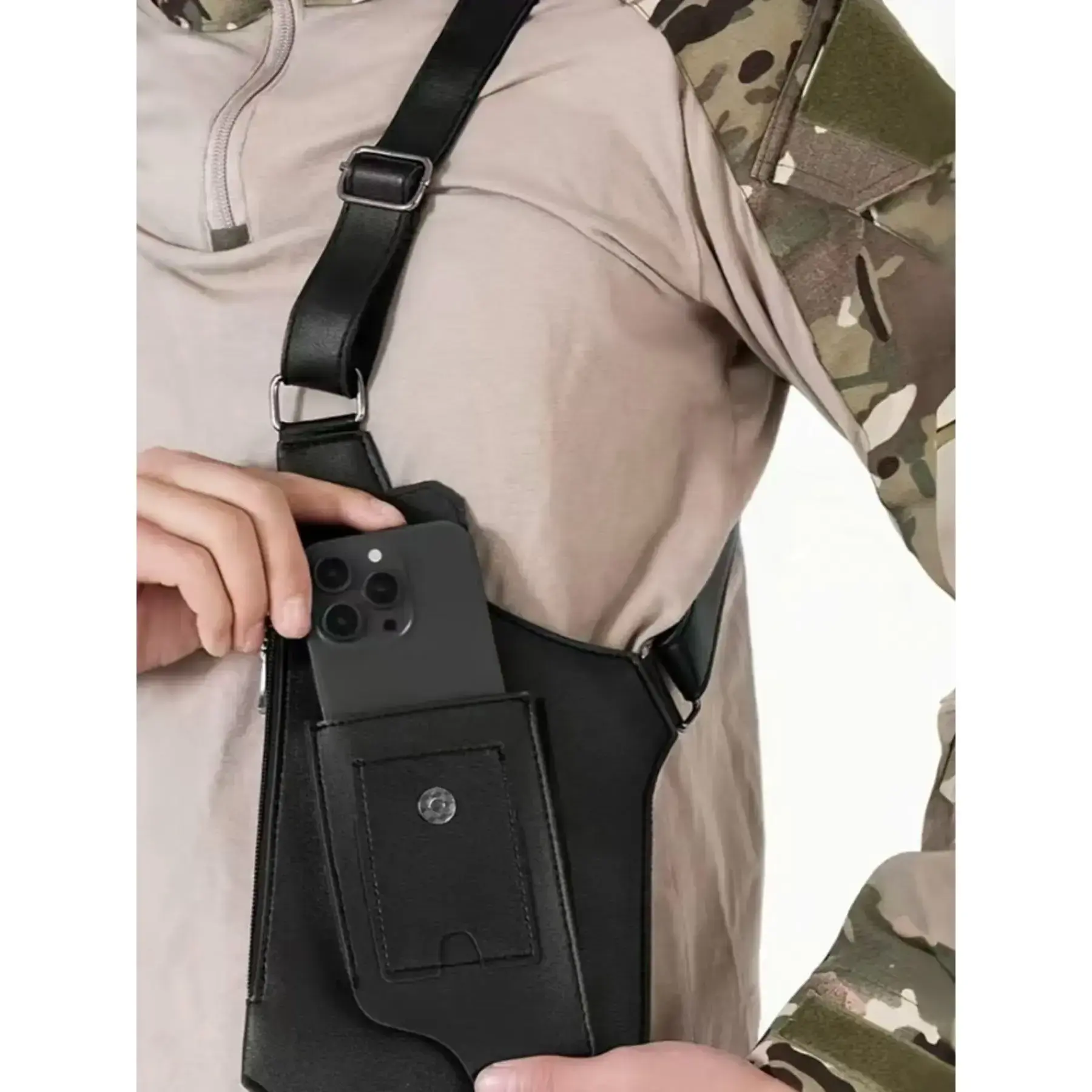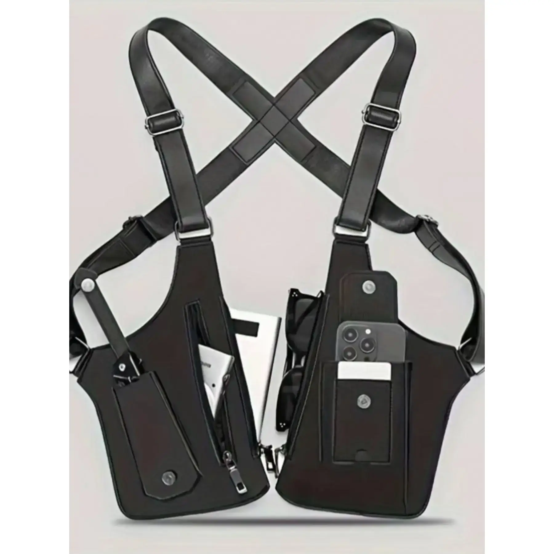 【Secure Storage】: Features a concealed wallet pocket and gun holder, enhancing security while carrying essentials during outings. 【All-Season Use】: Designed for use in all seasons, making it a reliable companion for various outdoor activities and travels. 【Plain Pattern】: Exhibits a plain pattern, ensuring a minimalist aesthetic that easily complements different outfits and occasions. 【Sporty Look】: Sporty style suitable for everyday wear, catering to those who appreciate functional and casual outdoor gear. 【Multiple Compartments】: Equipped with multiple compartments for organized storage, ensuring easy accessibility to items on the go.