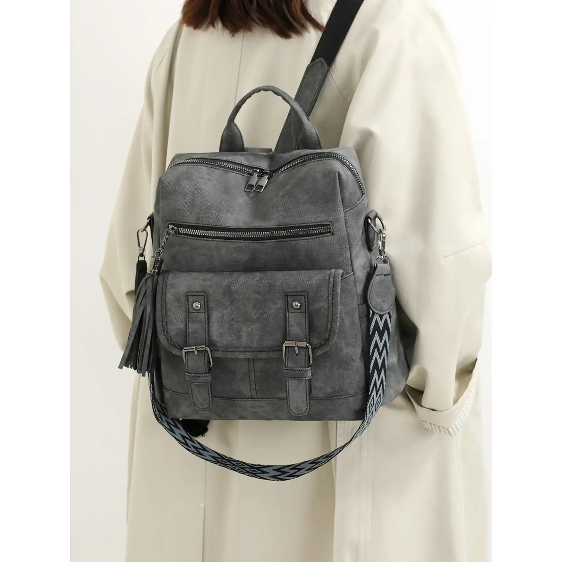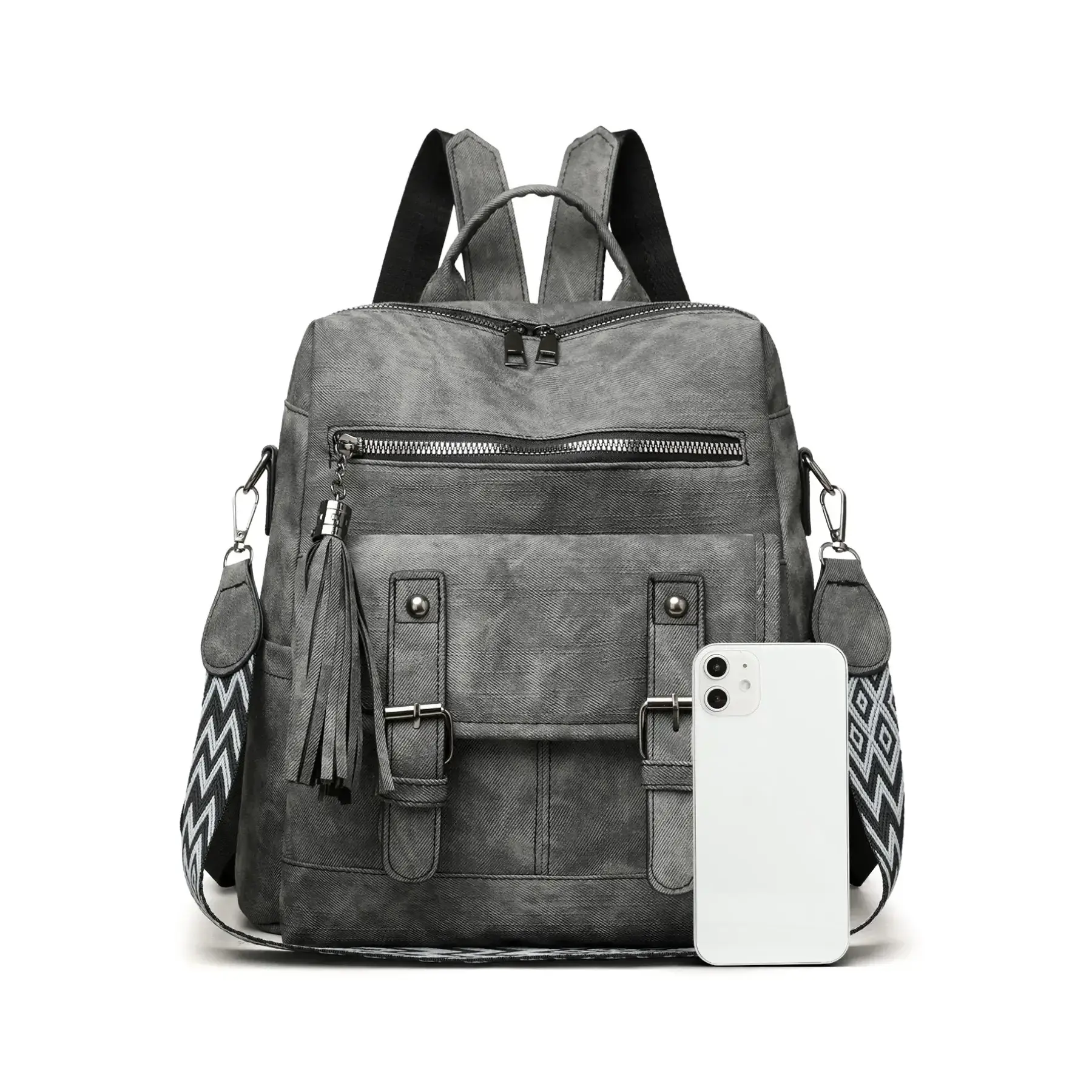 【Multifunctional Use】: This backpack offers dual functionality as a shoulder bag or a backpack, enhancing its practicality. 【Spacious Capacity】: Designed with ample room, this bag accommodates daily essentials, making it suitable for various activities. 【Unique Tassel Feature】: The stylish tassels add a distinctive flair, setting this backpack apart from conventional designs. 【Seasonal Versatility】: Crafted for all seasons, this backpack complements various outfits throughout the year. 【Durable Material】: Constructed from high-quality soft leather, this bag ensures durability while maintaining an upscale look.