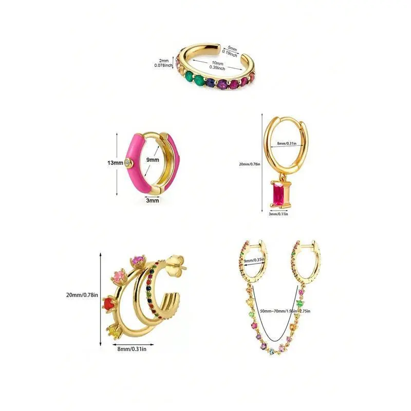 6 Pcs 24K Gold Plated Cubic Zirconia Dangle Earrings For Women Colorful Zirconia Hoop Earrings Set Fashion Jewelry gifts3