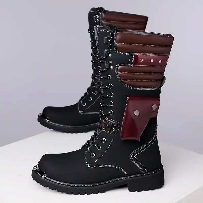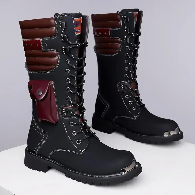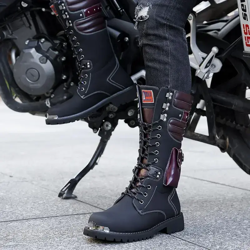 Men's Motorcycle Boots Workwear Knight American Street Style Black Shoes Closed Footwear Bota Decor Orthotic Boy Women Pedal(gift)GiftGift