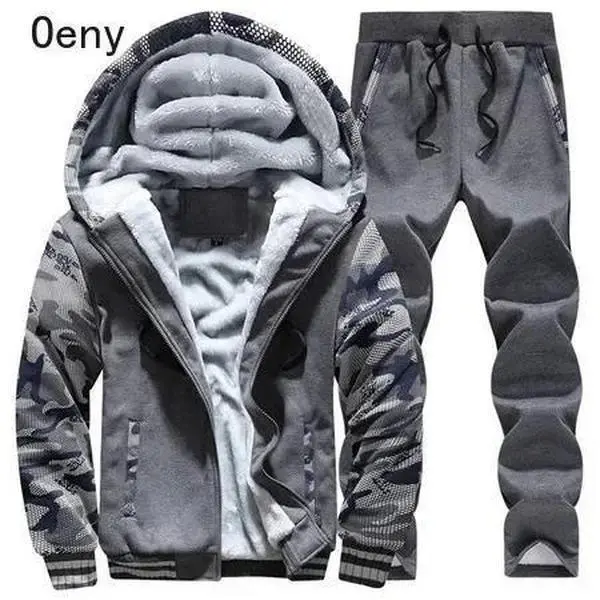 New Winter Fleece Thicken Men's Two-piece Zipper Sports Set Hooded Thermal Suit Casual Oversized TracksuitGift