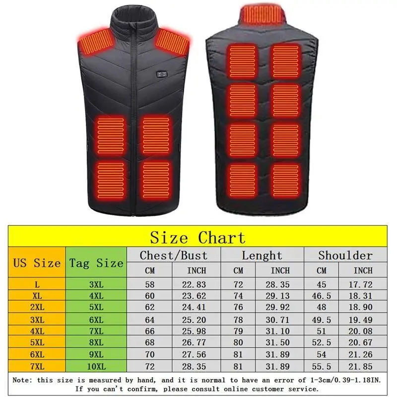 Winter Men Warm Heated Vest Double Control 15 Heating Zones Heating Jacket for Outdoor Skiing US 1pcsGift