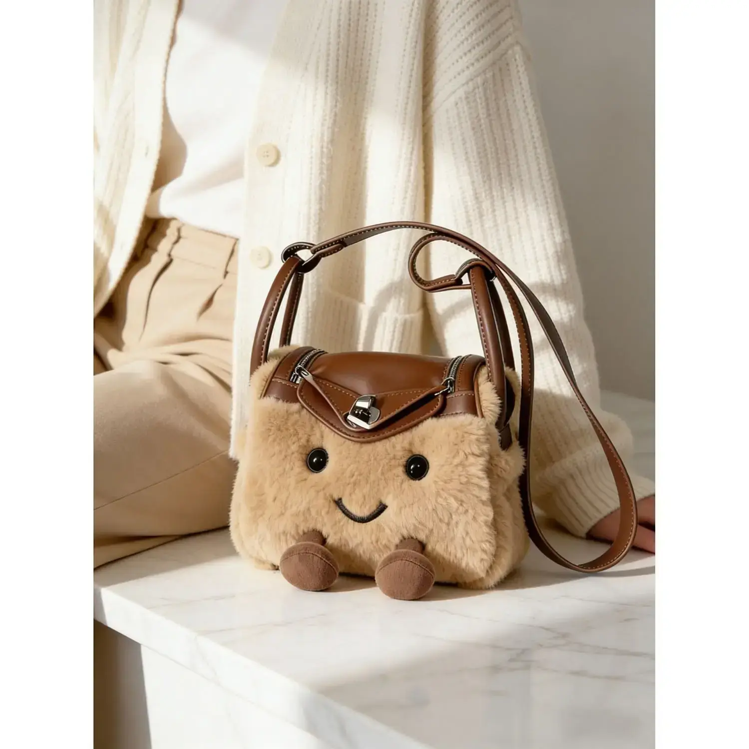 【Unique Plush Design】: This product features an adorable plush design that distinguishes it from standard bags in the market. 【Miniature Size】: Compact mini dimensions make it easy to carry essentials while remaining lightweight and easily portable. 【Crossbody Versatility】: Designed for both shoulder and crossbody wear, adapting seamlessly to your practical carrying preferences. 【Charming Appearance】: The cute look of this bag appeals to those who appreciate playful and whimsical accessory options. 【Durable Materials】: Constructed with quality materials for a reliable and long-lasting addition to your accessory collection.