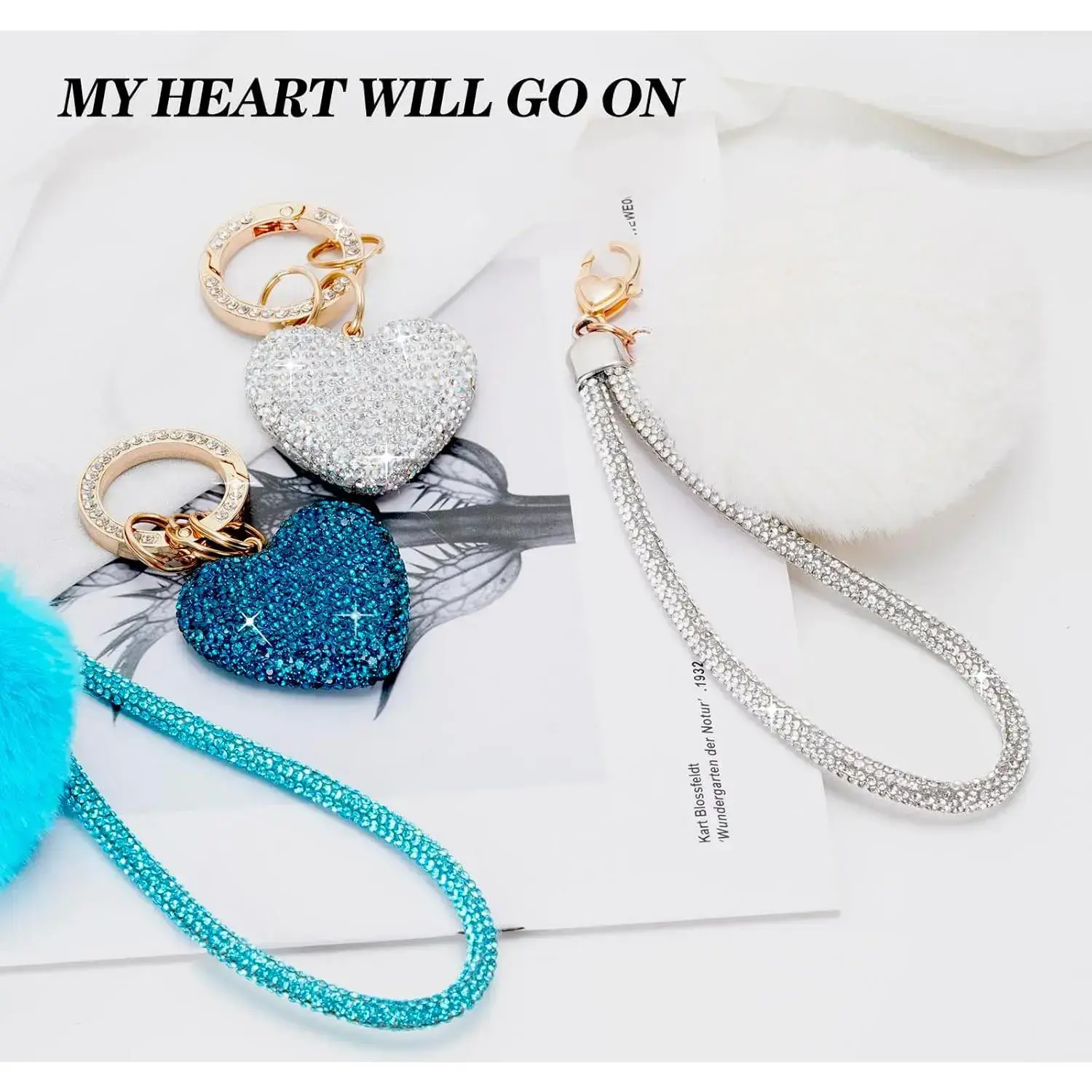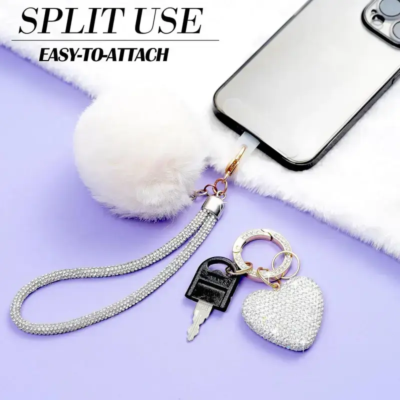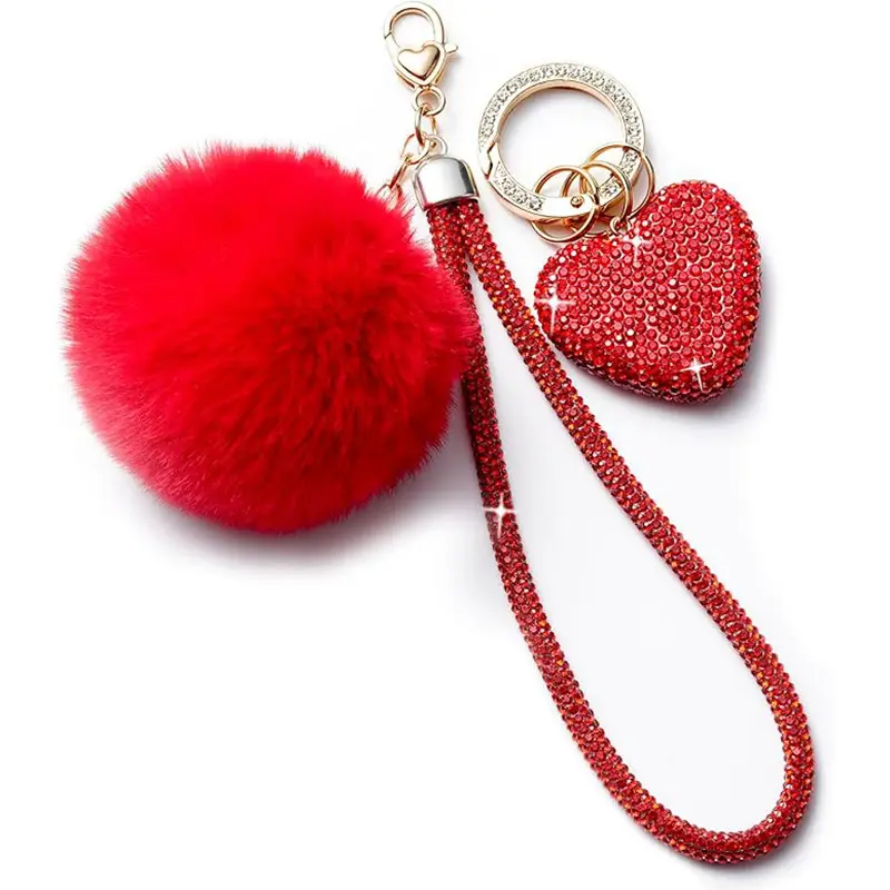 Cute Heart Keychains for Women, Bling Key chain Accessories Girly Wristlet Keychain for Car Keys, Backpack