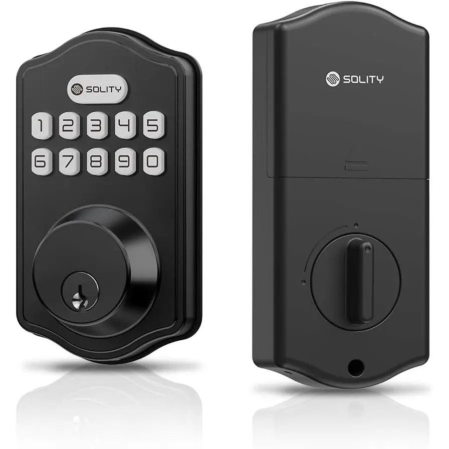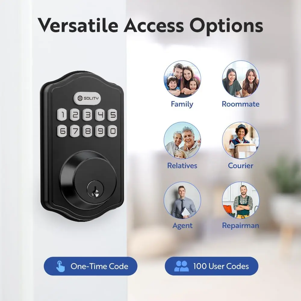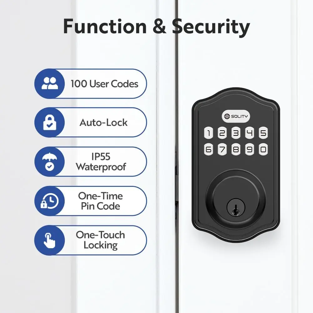 Smart Digital Electronic Deadbolt Door Lock, Keyless Entry, Auto Lock, 100 Custom Codes, Easy Installation, Keypad for Front & Back Door, Residential & Commercial, AT1, Matte Black