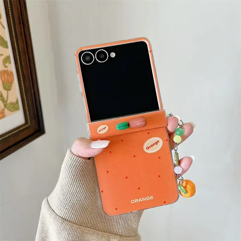 Korean Cute Orange Polka Dot Phone Case For Samsung Galaxy Z Flip 7 6 5 4 3 Cover with Charm Hinge Cases Flip6 Flip7 Hard Funda