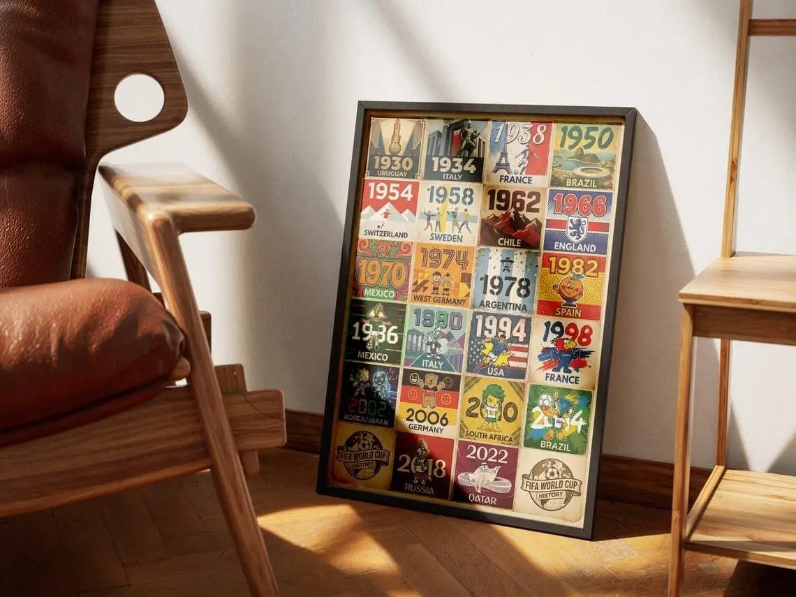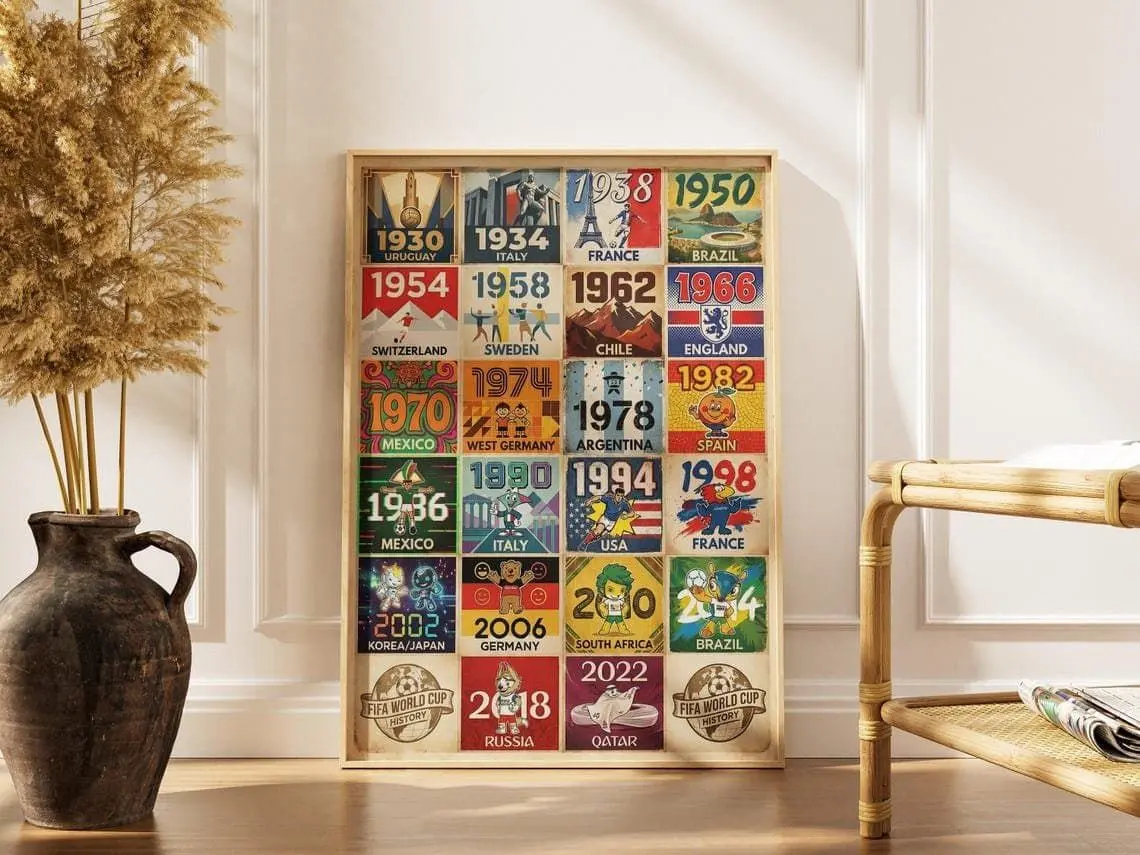 FIFA World Cup History Poster Retro Collage Print Sports Room Decor