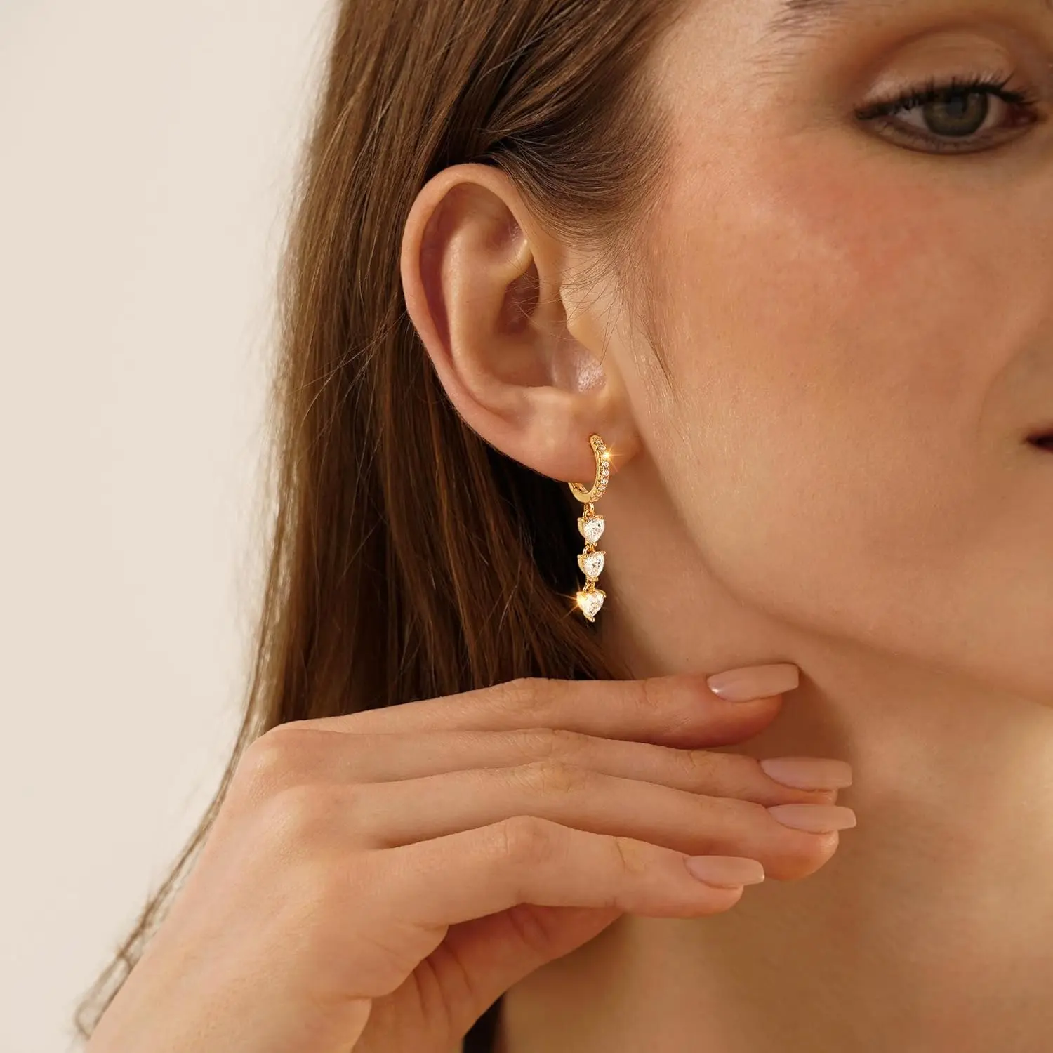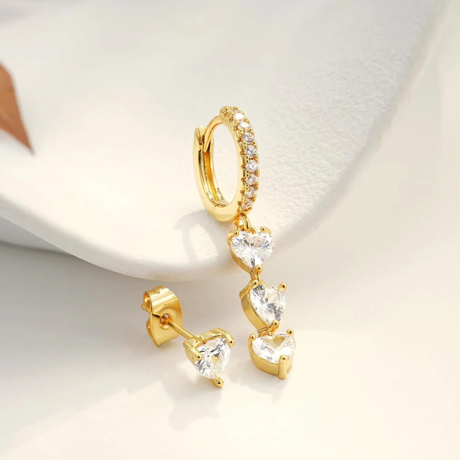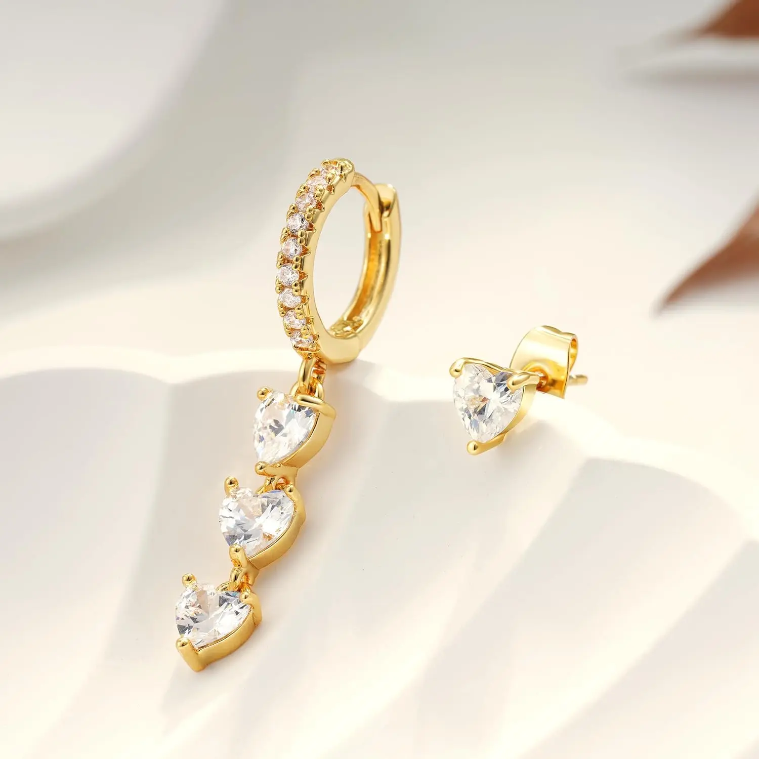 Valentines Day Earrings for Women Dangle Earrings - 14K Gold Plated Heart Dangle Earring Set Dainty Simple Long Dangling Jewelry Drop Hoop Earring for Women Jewelry Gifts
