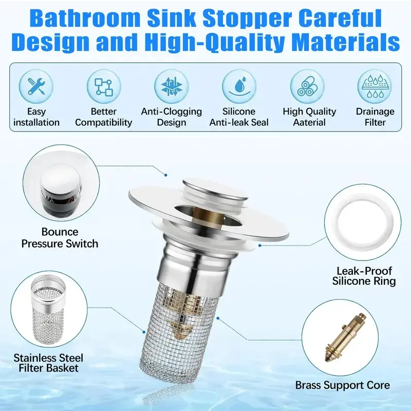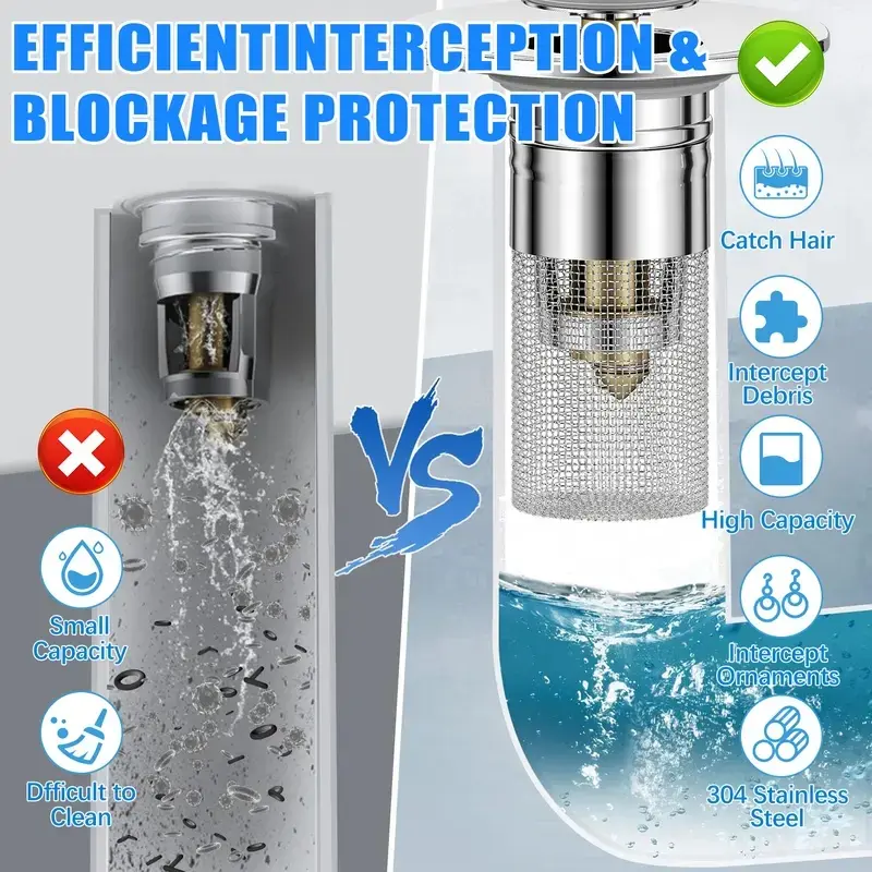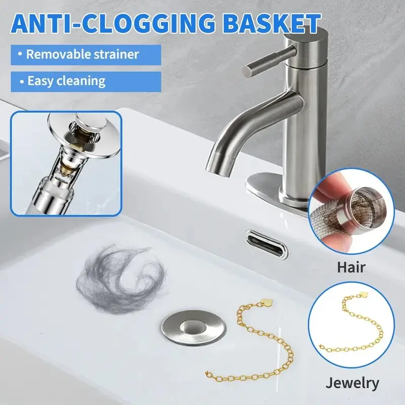 Multifunctional Drain Hair Catcher — Portable Anti-Clog Shower Floor Drain Stopper, Stainless Steel Push-Type Sink Plug; a Clog-Preventing Filtration Accessory Suitable for Sinks, Bathtubs, and Showers.