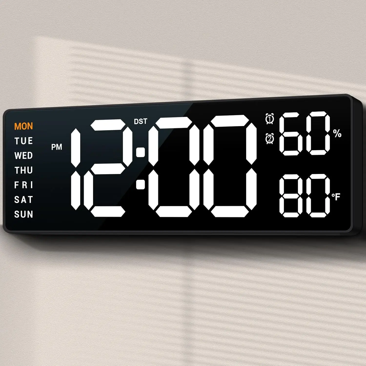16.5" Large Digital Wall Clock: 11 RGB Color LED Display with Remote Control, Auto DST, Temperature & Date, Big Number Wall Clock for Seniors, Classroom, Office, Gym, Home Decor Black