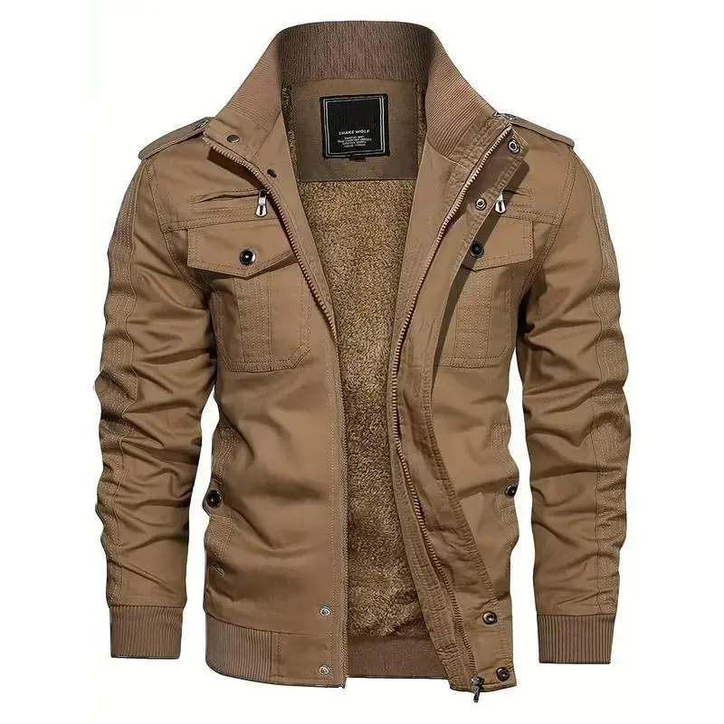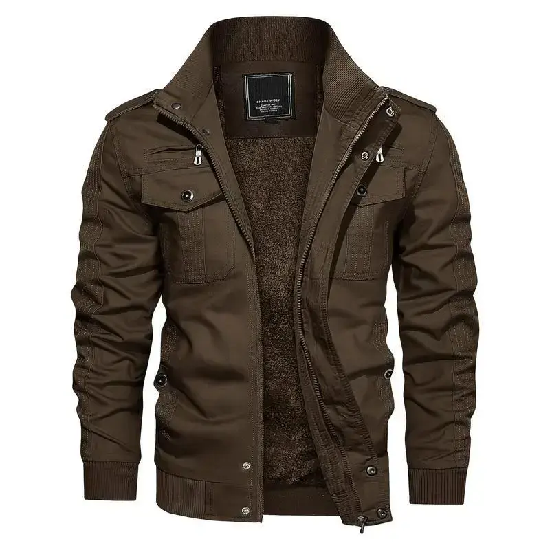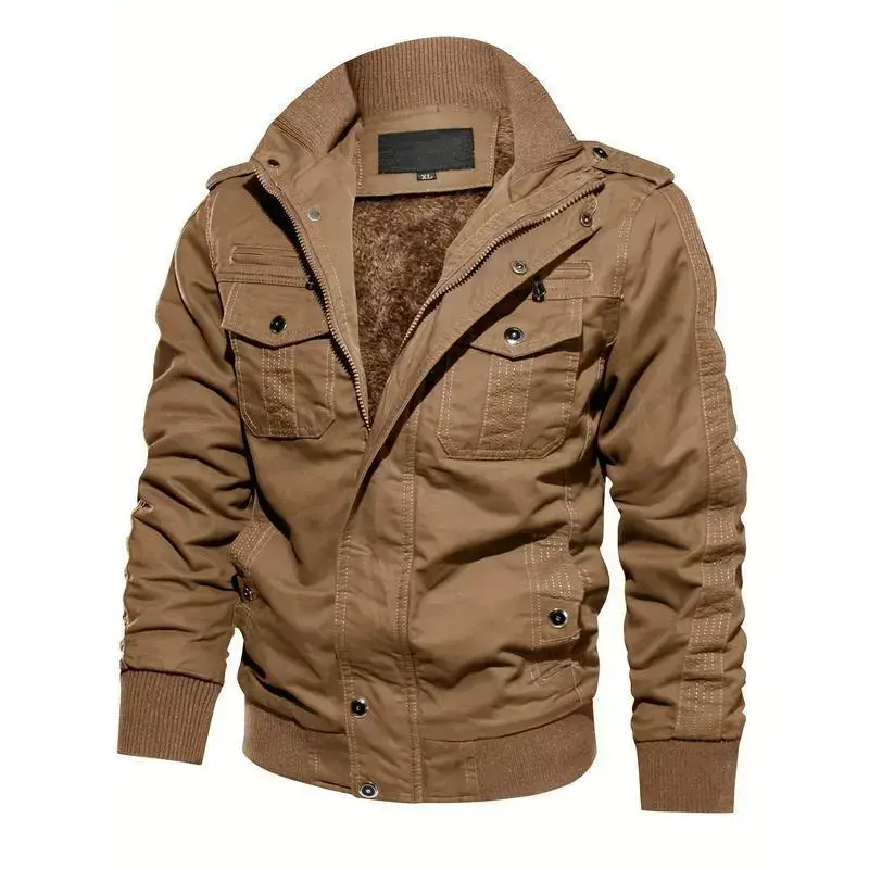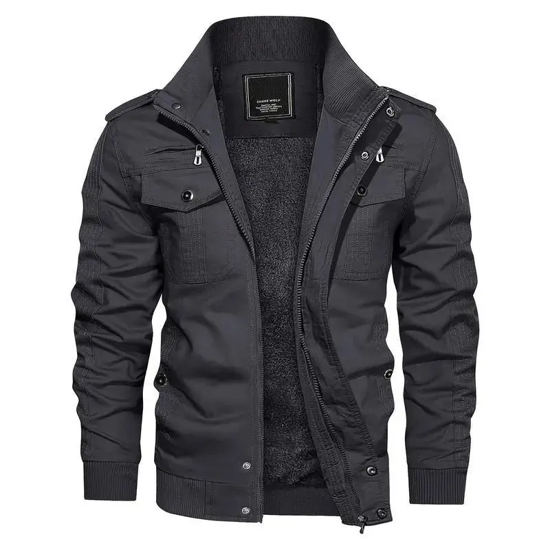 Zipper-button Double Closure, Comfy Stand-up Collar, Fleece Lining, Absolutely Must-have Winter Jacket! /This Cargo Work Jacket Has 2 Chest Pockets, 2 Regular Side Pockets, And 1 Inside Pocket, Combining Cargo Style And Storage Capacity. /Perfect For Daily Wear Such As Work, Dating, Party. Also Great For Outdoor Activities As Training, Camping, Hiking, Picnics, Biking, Traveling. . . No Matter Spring, Fall Or Cold Winter, It Can Keep You Comfortable And Handsome. /Please Note There Is Only The Jacket You Order The Color And Size In The Package, Without Other Fittings
