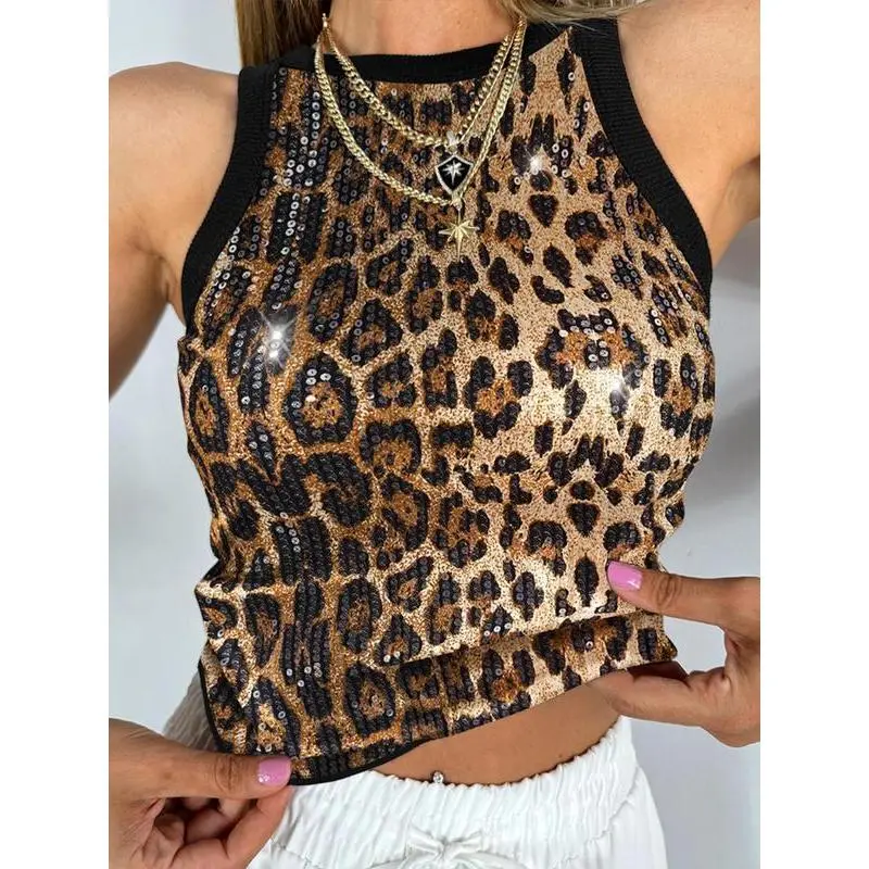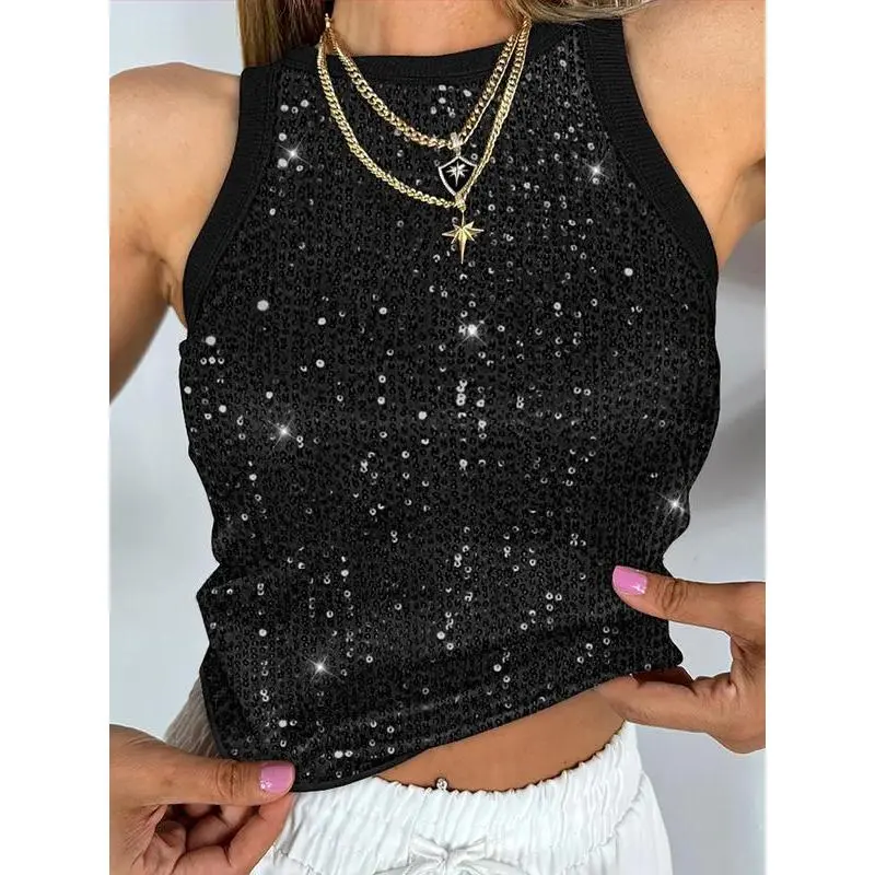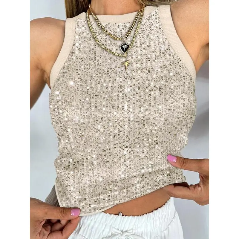 Style: Casual,Chic Type: Tank Neckline: O-neck Sleeve Style: Sleeveless Length: Regular Pattern Type: Camouflage Decoration: Allover Sequin,Contrast Binding Fit Type: Skinny Occasion: Daily Package Include: 1*Top Fabric Elasticity: Non-Stretch Sheer: No
