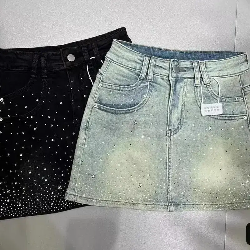 Starry Denim Skirt for Women Summer New Retro Slimming a-Line Sheath Denim Skirt