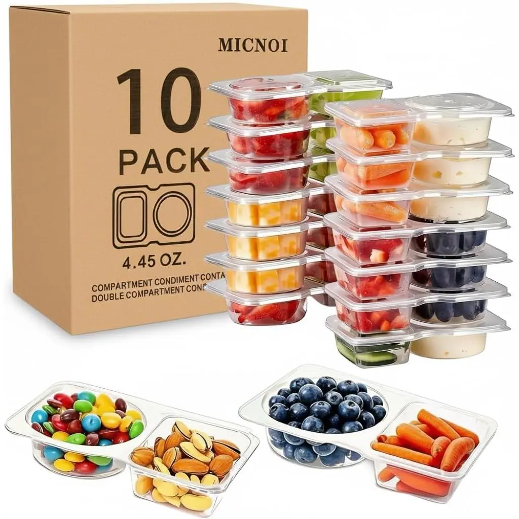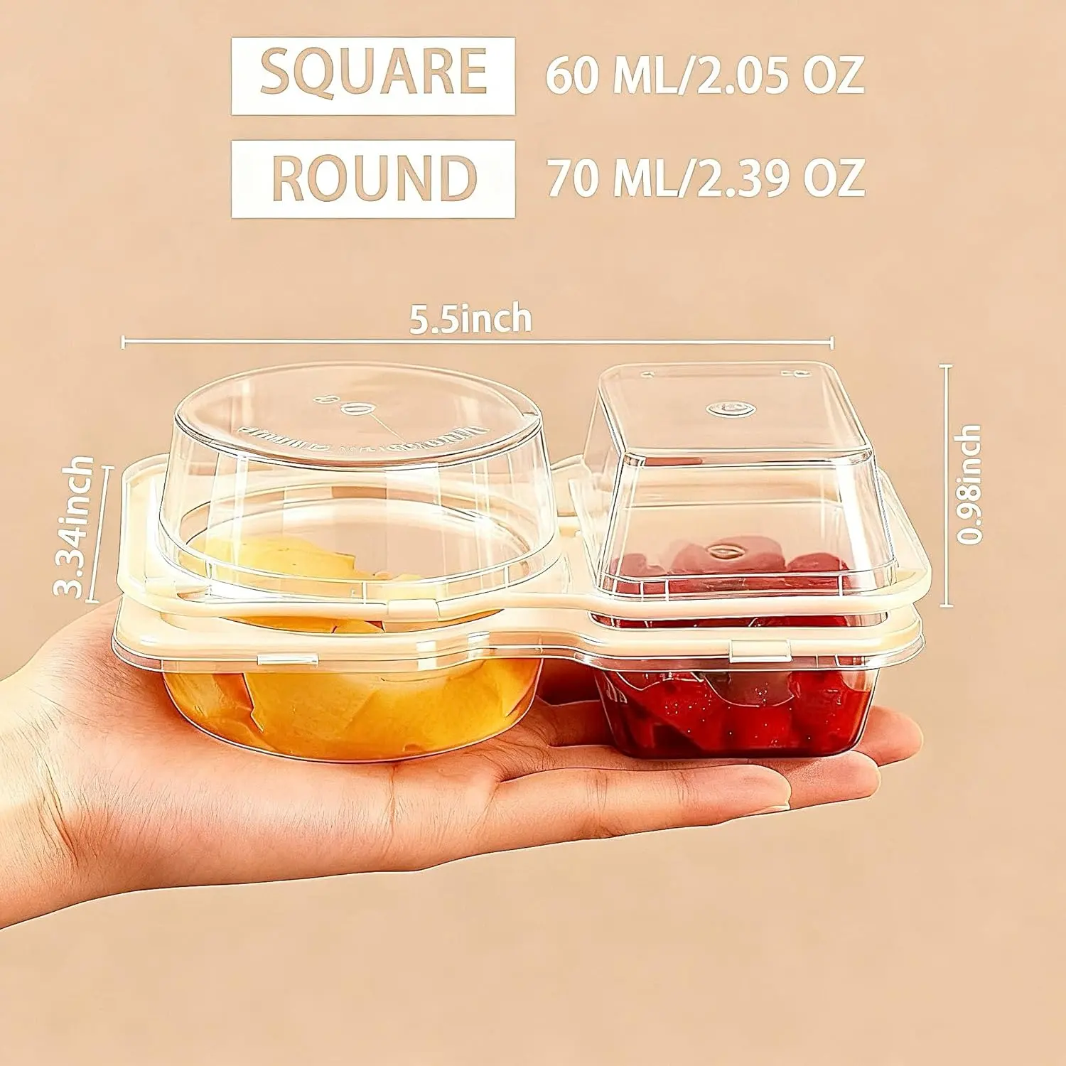 Snack Pack Containers, Reusable 2 Compartment Condiment Containers with Lids, Ideal for On-the-Go Mini Sauce Boxes & Snack Prep Containers for Kids and Adults, BPA-Free