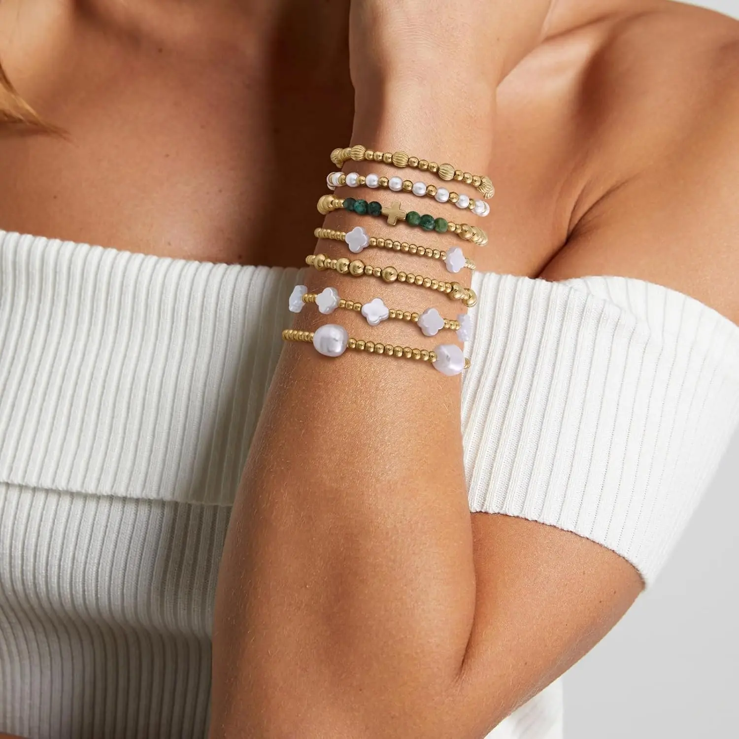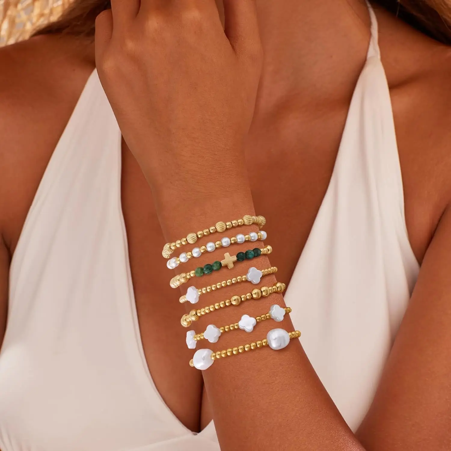 Gold Beaded Bracelets Set for Women 14K Gold Plated Dainty Pearl Cross Bracelet Stack Stretch Bracelet Set Fashion Accessories Gifts